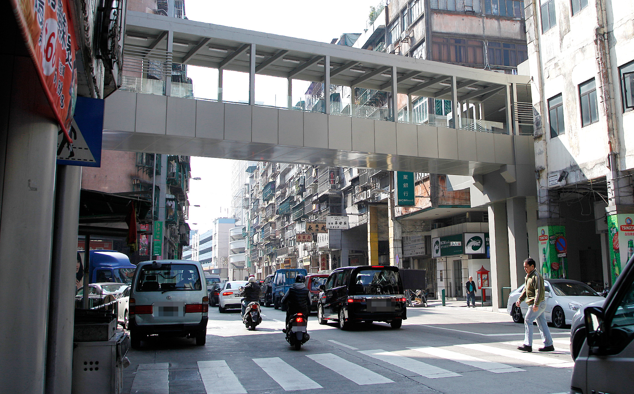 隨着沙梨頭海邊街的車流量日漸增多,考慮到該區居民過路的需要,土地工務運輸局落實在該區建造行人天橋的計劃,將人、車分流,為行人提供安全過路設施。有關工程的建造、測試和驗收等工作已於近日完成,並可於周五早上十一時開放公眾使用。魚鰓巷行人天橋橫跨路面的部分長約20米、寬2.5米,橋下淨高5.6米,兩端分別連接魚鰓巷及在工人康樂館原址上興建的工聯大廈。