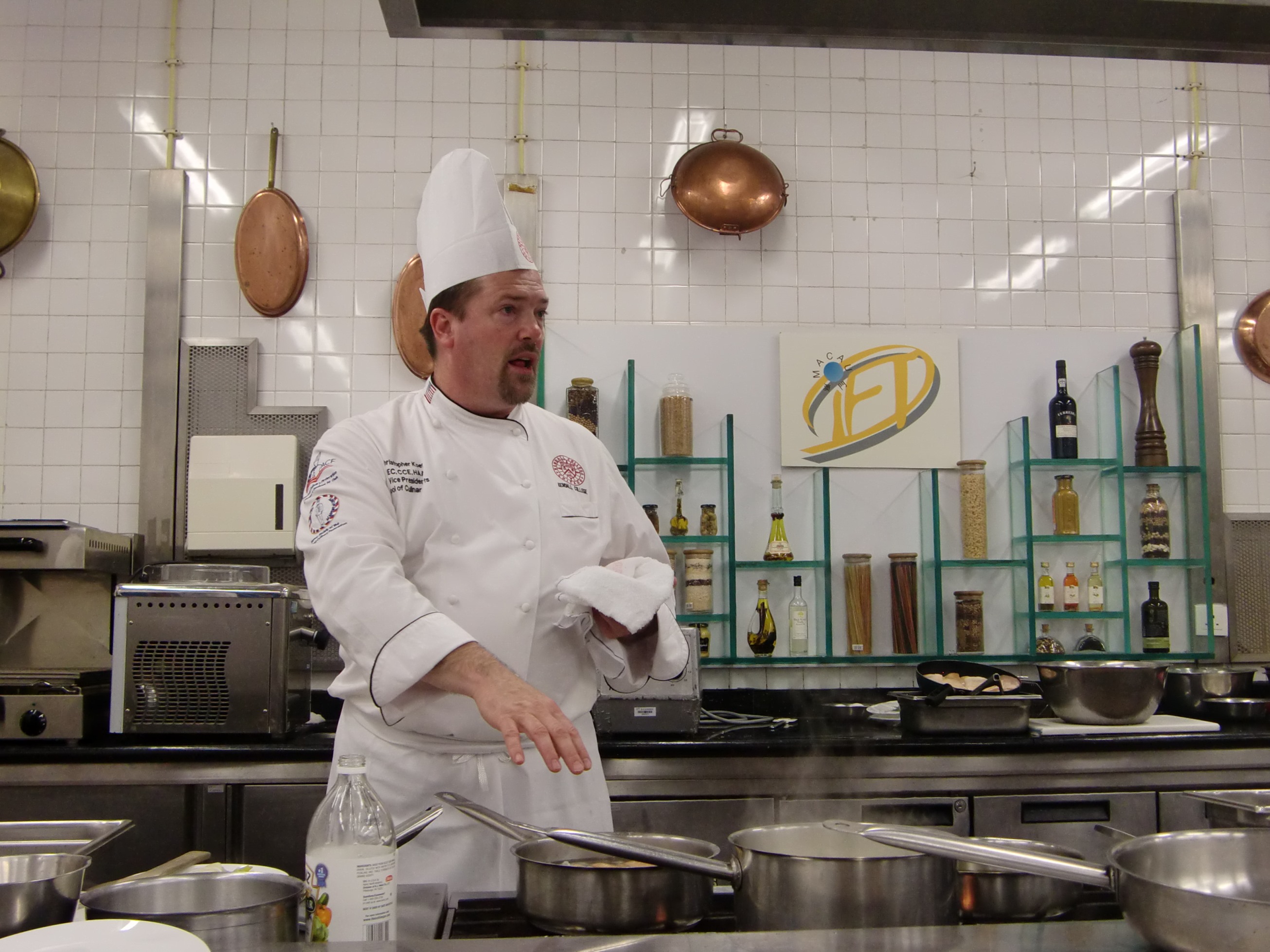 繼於9月23至27日舉辦的法國巴黎 Ferrandi 廚藝學院星級大師廚藝展示周後,旅遊學院聯同美國芝加哥肯代爾大學,於10月30日舉辦“旅遊學院名廚大師技藝展示工作坊之美國中西部地區佳餚”,邀請名廚Christopher Koetke作烹調展示,以加強本澳酒店及餐飲業界對美國菜式的認識。