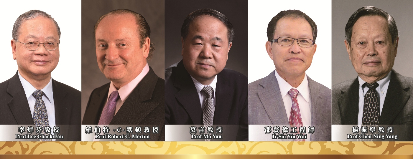 澳門大學藉由頒發榮譽博士學位,表彰擁有卓越成就及為社會發展和教育做出重大貢獻的傑出人士,下月將有三位諾貝爾奬得主羅伯特‧C‧默頓教授、楊振寧教授、莫言教授,以及兩位土木工程界鉅子李焯芬教授和邵賢偉工程師榮膺澳大榮譽博士。