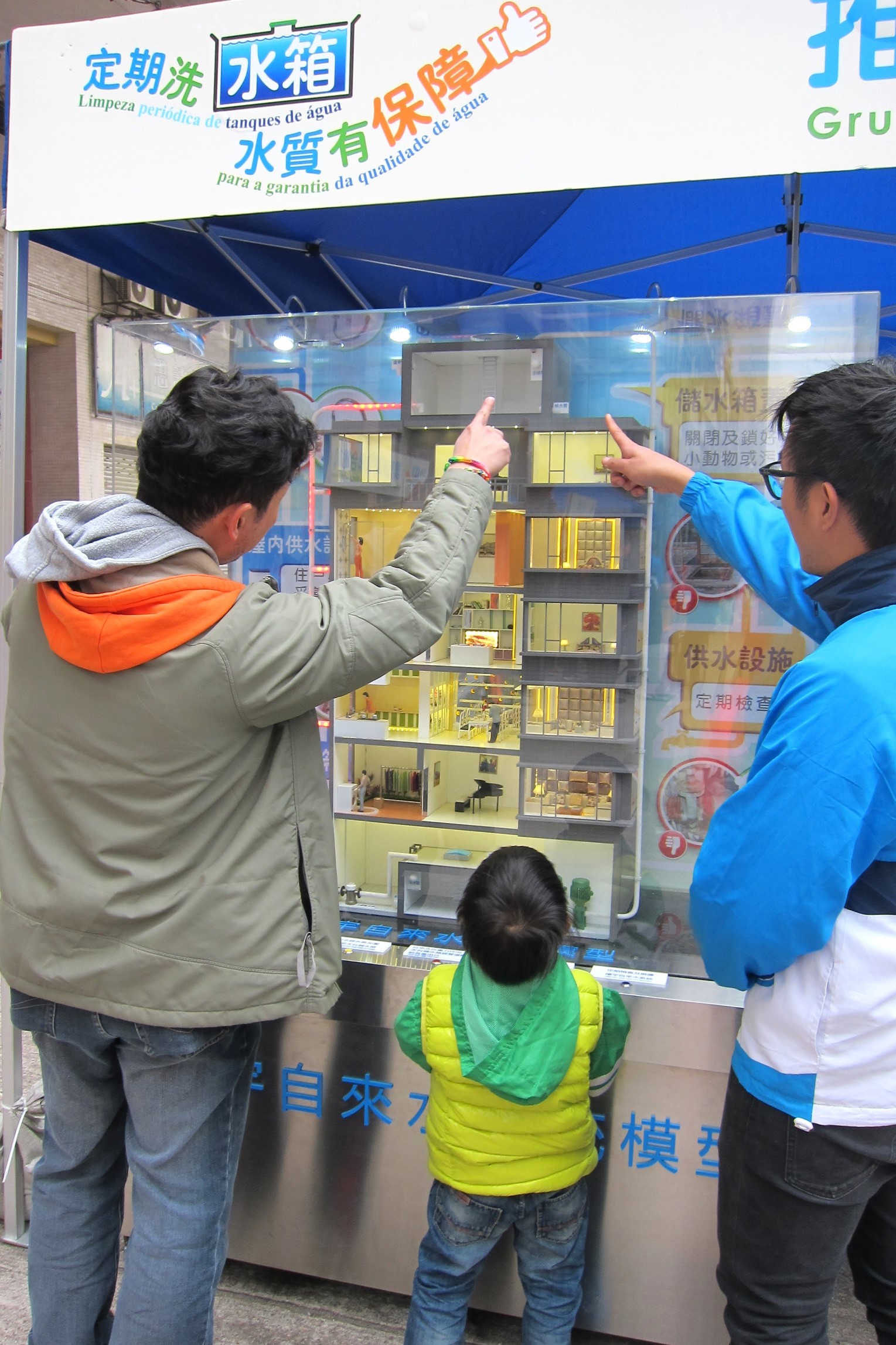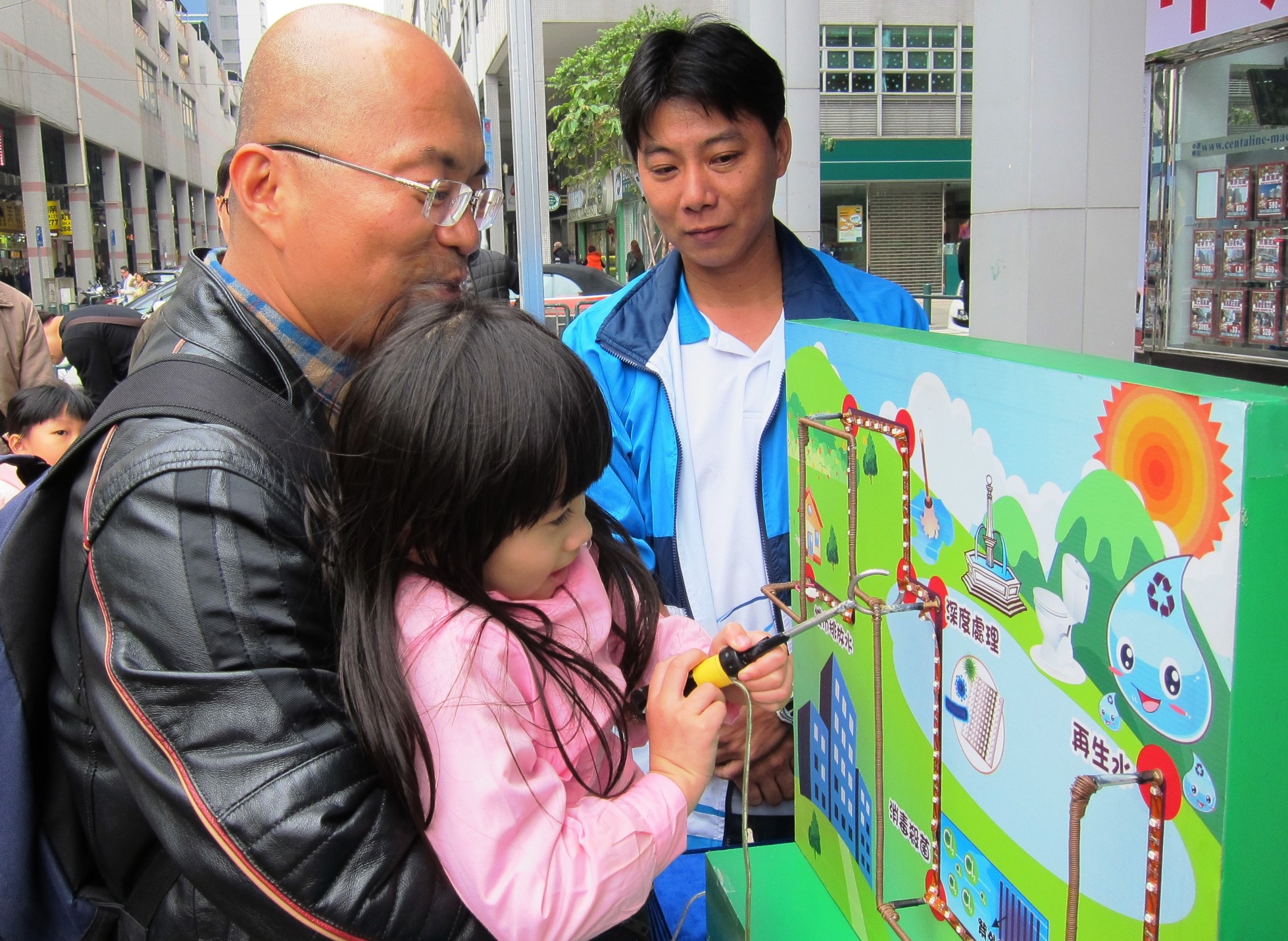 今日下午二時半至五時,小組於氹仔花城公園旁舉辦社區推廣活動,今年主題為“定期洗水箱,水質有保障”,現場除了展出節水器具以及樓宇自來水系統模型,還設有多個以“節約用水”和“維護管理樓宇自來水系統”為主題的攤位遊戲,透過輕鬆、互動、有趣的形式介紹節約用水和維護樓宇自來水系統的方法。