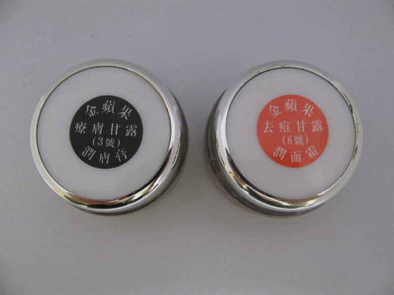 根據香港衛生署的公告,產品「金蘋果療膚甘露(3號)潤膚膏」及「金蘋果去痘甘露(8號)潤面霜」被摻雜有西藥成份「甲硝唑」(metronidazole)、「咪康唑」(miconazole)、「紅霉素」(erythromycin)、「氯霉素」(chloramphenicol)、「氯苯那敏」(chlorpheniramine)及「水楊酸」(salicylic acid),而「金蘋果療膚甘露(3號)潤膚膏」還摻雜有「灰黃霉素」(griseofulvin) 、「甲基水楊酸」(methyl salicylate)、「地塞米松」(dexamethasone) 和「氯倍他索」(clobetasol),基於此,該署呼籲市民不要購買及使用上述產品。根據紀錄,衛生局並沒有批准過上述產品進口及投放本澳市場。