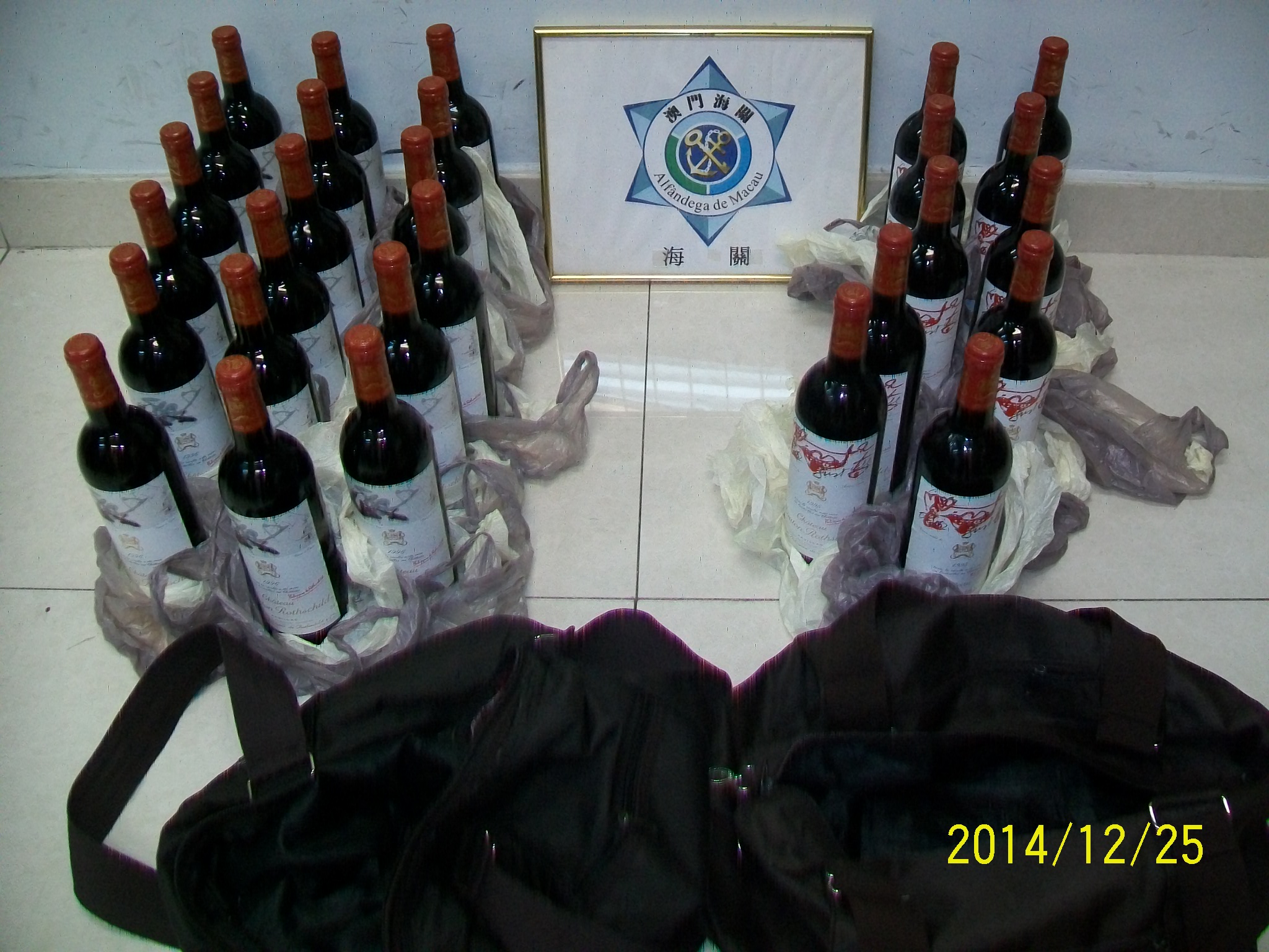在12月25日至28日期間,澳門海關口岸監察廳關員在內港碼頭範圍內,包括南舢舨及北舢舨碼頭,分別查獲三宗非法出口葡萄酒案件,共緝獲78支外國品牌的葡萄酒。行動中,一名澳門居民及兩名內地居民被帶返內港海關站進行調查。