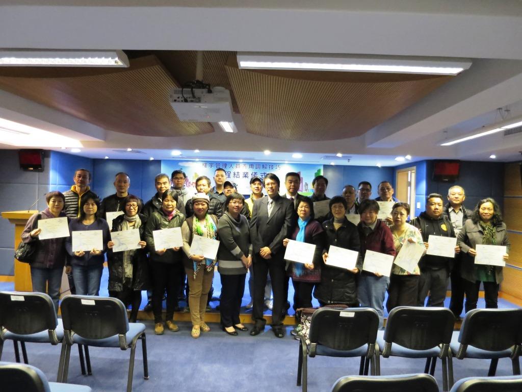 由房屋局及澳門生產力暨科技轉移中心合辦的兩期“樓宇管理人員善用調解技巧”培訓課程,分別於今年10月及11月圓滿結束。35名分別來自本澳私人樓宇及經濟房屋之樓宇管理委員會,以及從事或支援樓宇管理工作的學員完成修讀課程,並獲頒發修業證書。