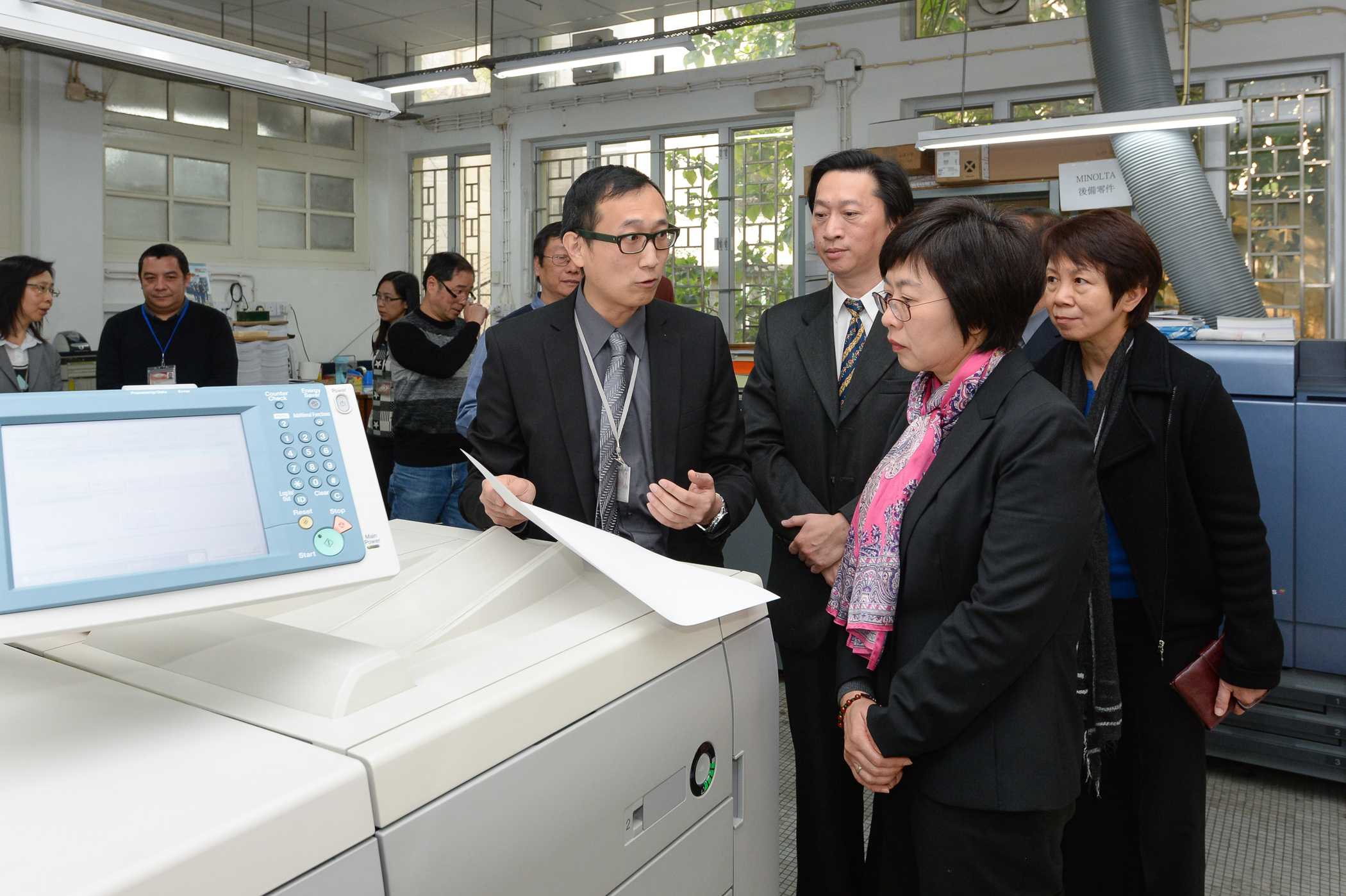 19日下午陳司長首先到印務局,瞭解部門的具體運作及人員的工作情況,並對該局“傳統工藝,現代管理”的理念表示讚賞。隨後,在視察法律及司法培訓中心時,陳司長指出,該中心負責的司法及法律領域專業培訓工作對鞏固特區的法治基礎、落實依法施政等核心方針政策尤其重要,她鼓勵中心的人員在工作崗位上繼續努力,精益求精,盡心配合部門領導履行培訓中心的職責。
