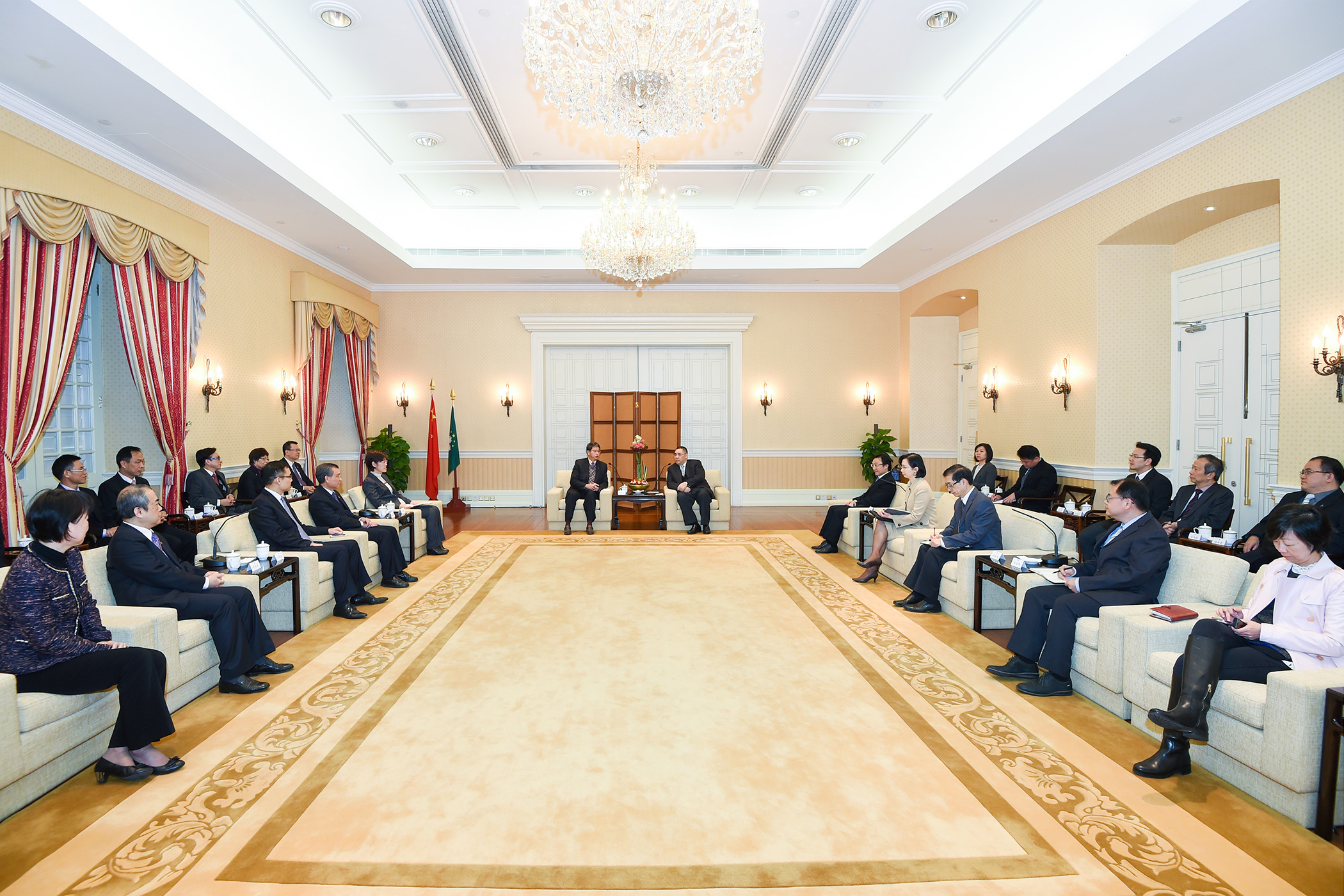 行政長官崔世安今(22)日會見澳門街坊會聯合總會新一屆領導層一行,就本澳各項民生事務和社會發展聽取意見。行政長官表示,《2015年財政年度預算案》已獲立法會通過,特區政府會繼續執行未來一年的民生服務和措施。