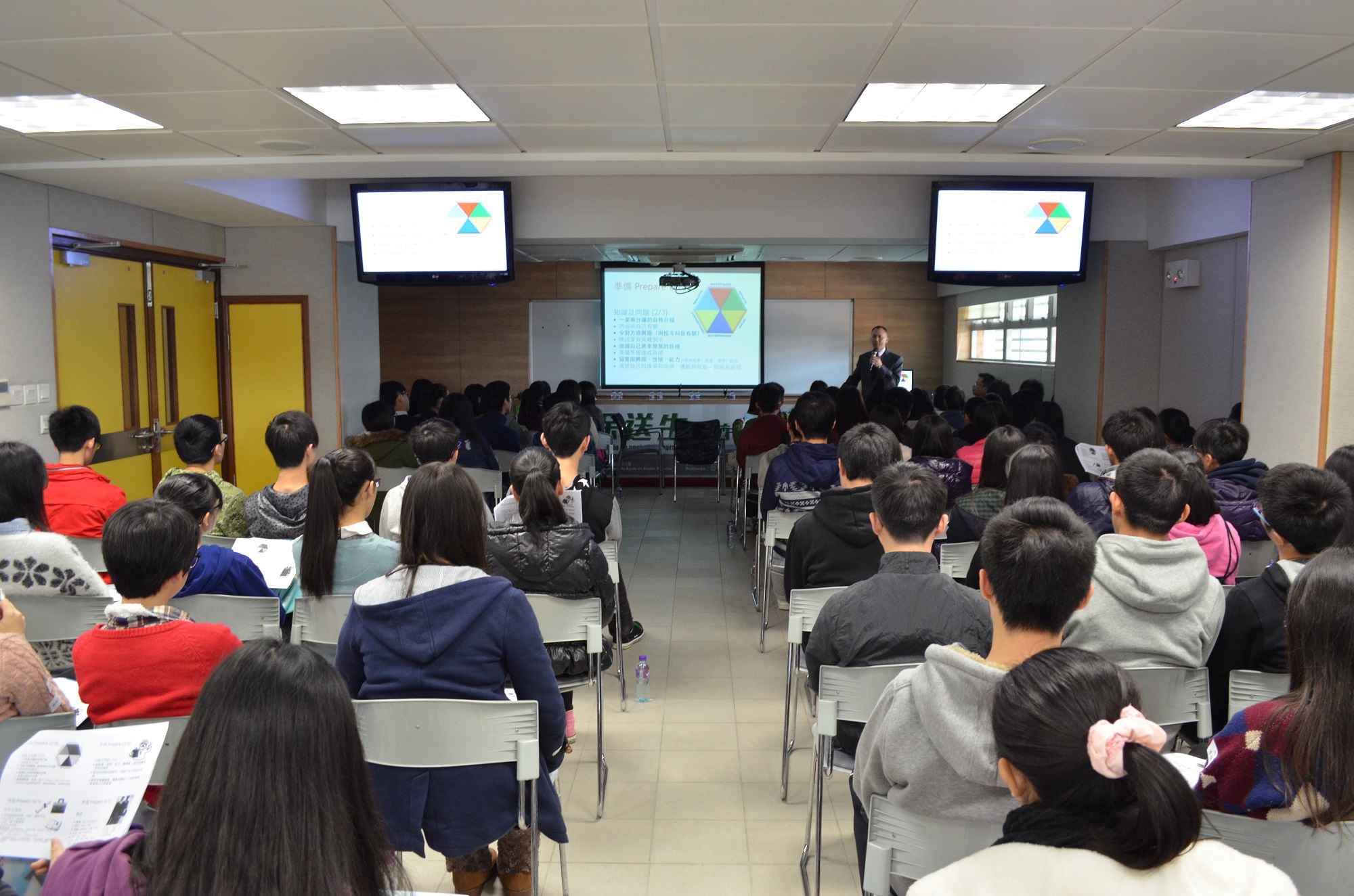 講座旨在協助應屆高中畢業生做好參加保送考試的準備,讓學生瞭解考試程序,掌握面試技巧,提高獲錄取的機會。有關講座共設三場,吸引了本澳廿六所中學近三百名應屆高中畢業生參加。承辦單位除向參加學生講解面試形式、面試技巧、儀表標準和注意事項外,還以小組形式進行模擬面試。