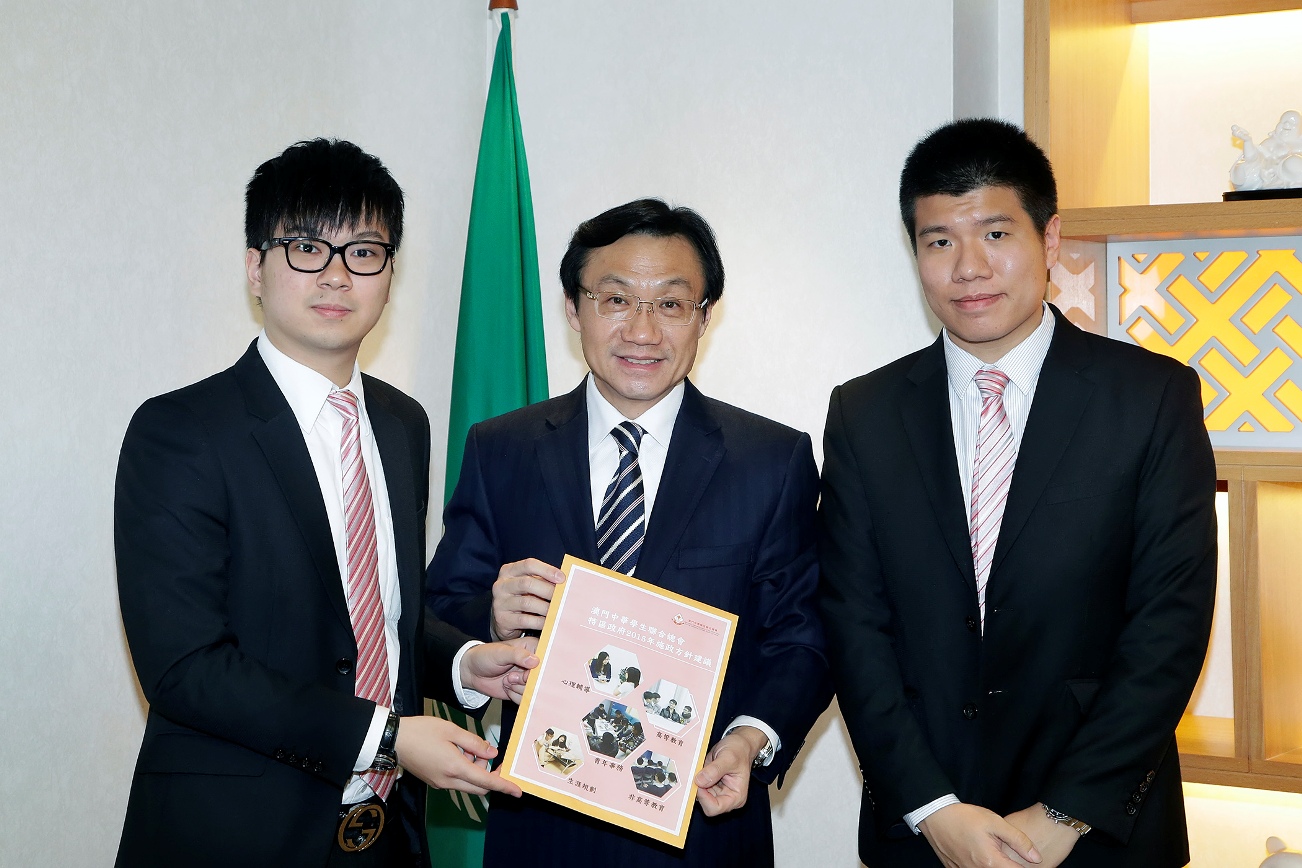 社會文化司司長譚俊榮今(16 )日在政府總部會見澳門中華學生聯合總會一行,就教育和青年事務領域的施政聽取學聯的意見。他並勉勵青年學生放眼未來,自強不息。