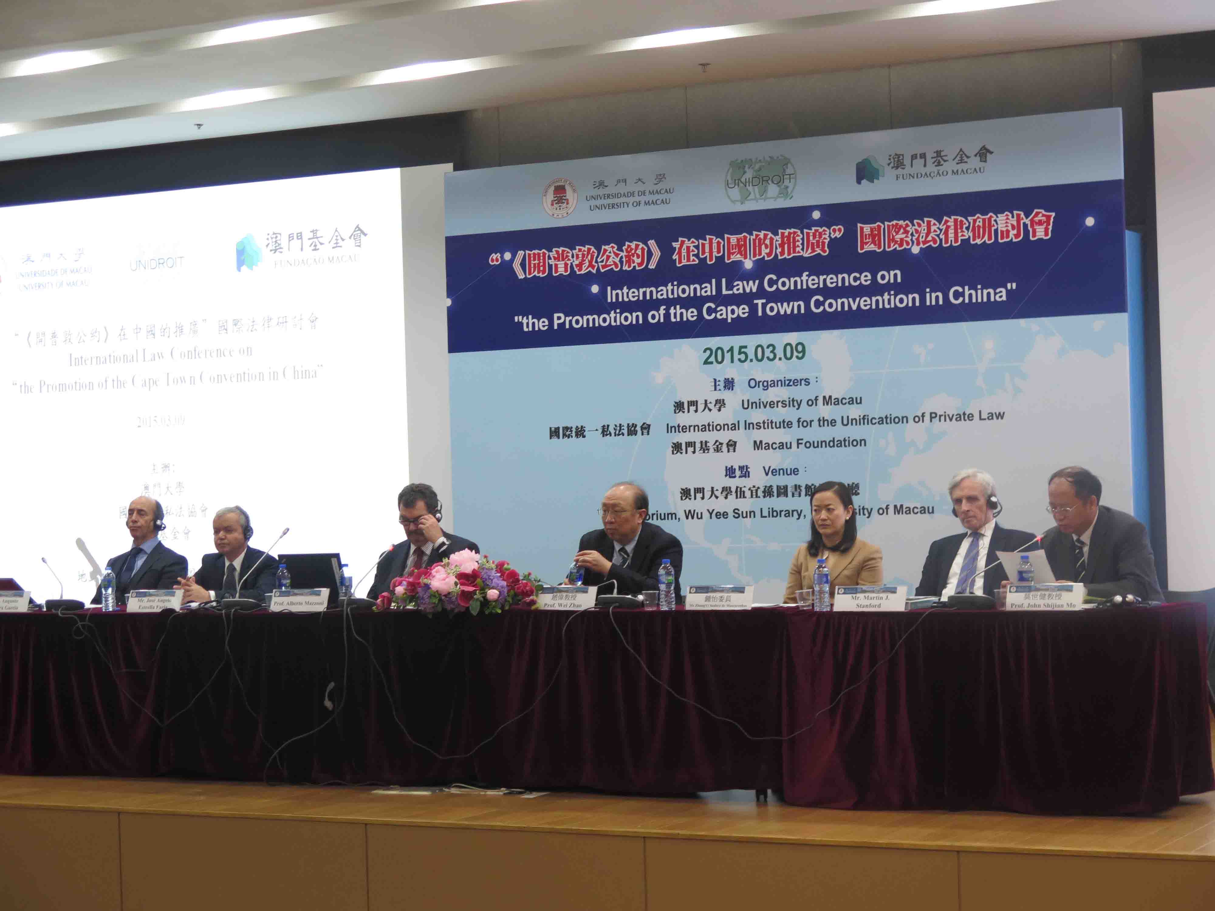 由澳門大學法學院、國際統一私法協會(UNIDROIT)、澳門基金會合辦的“《開普敦公約》在中國的推廣"國際法律研討會在澳門大學伍宜孫圖書館演講廳圓滿舉行,研討會吸引了近百名來自中港澳的學者、師生和專家,共同就關於調整航空器設備、鐵路車輛、空間資產三類移動設備融資和租賃的國際法律制度等問題進行交流和討論。