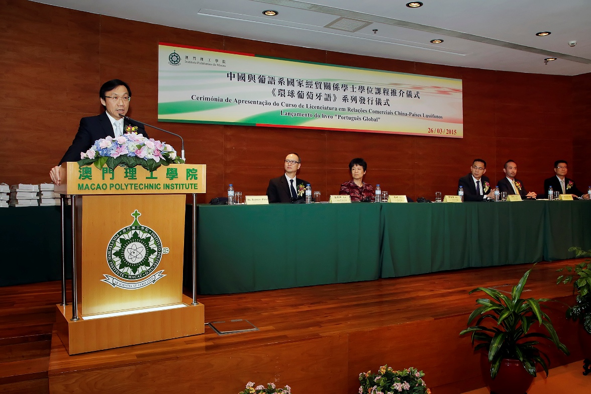 社會文化司司長譚俊榮今(25)日出席澳門理工學院舉行的“中國和葡語系國家經貿關係”學士學位課程推介會及《環球葡萄牙語》教材發行儀式,並發表致辭。他強調,澳門在憧憬中國和葡語國家經貿發展美好未來的同時,更應該把握良好契機,推動葡語教學和促進中國與葡語國家文化交流的發展。
