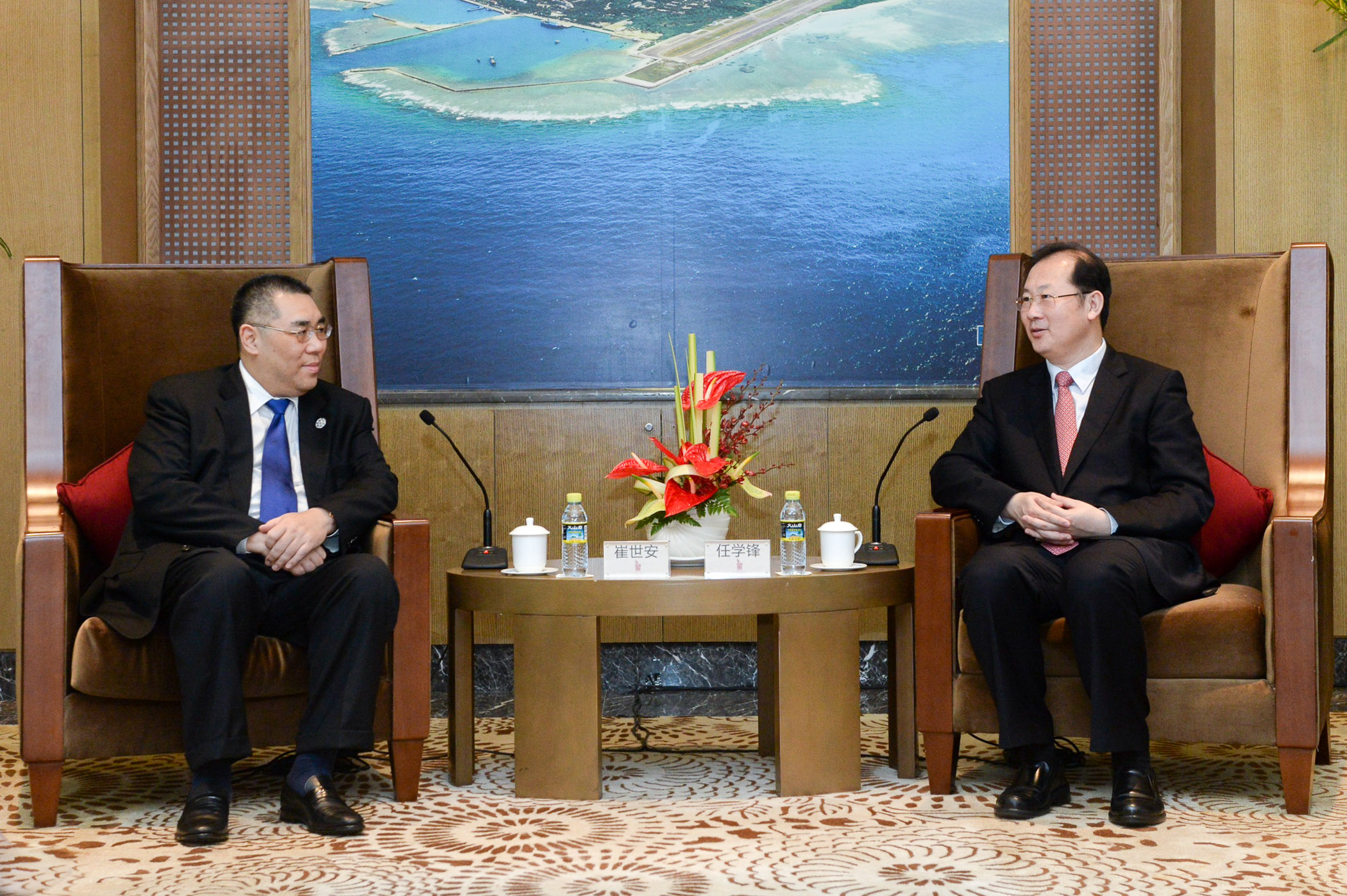 行政長官崔世安今(27)日上午率團抵達海南省,準備出席明日舉行的博鳌亞洲論壇2015年年會開幕式。行政長官下午在瓊與廣東省委常委、廣州市委書記任學鋒會面,雙方探討加強穗澳合作,特別是推動廣東自貿區南沙片區的發展,以及發揮澳門作為中國與葡語國家的服務平台作用,助廣州開拓葡語國家市場。