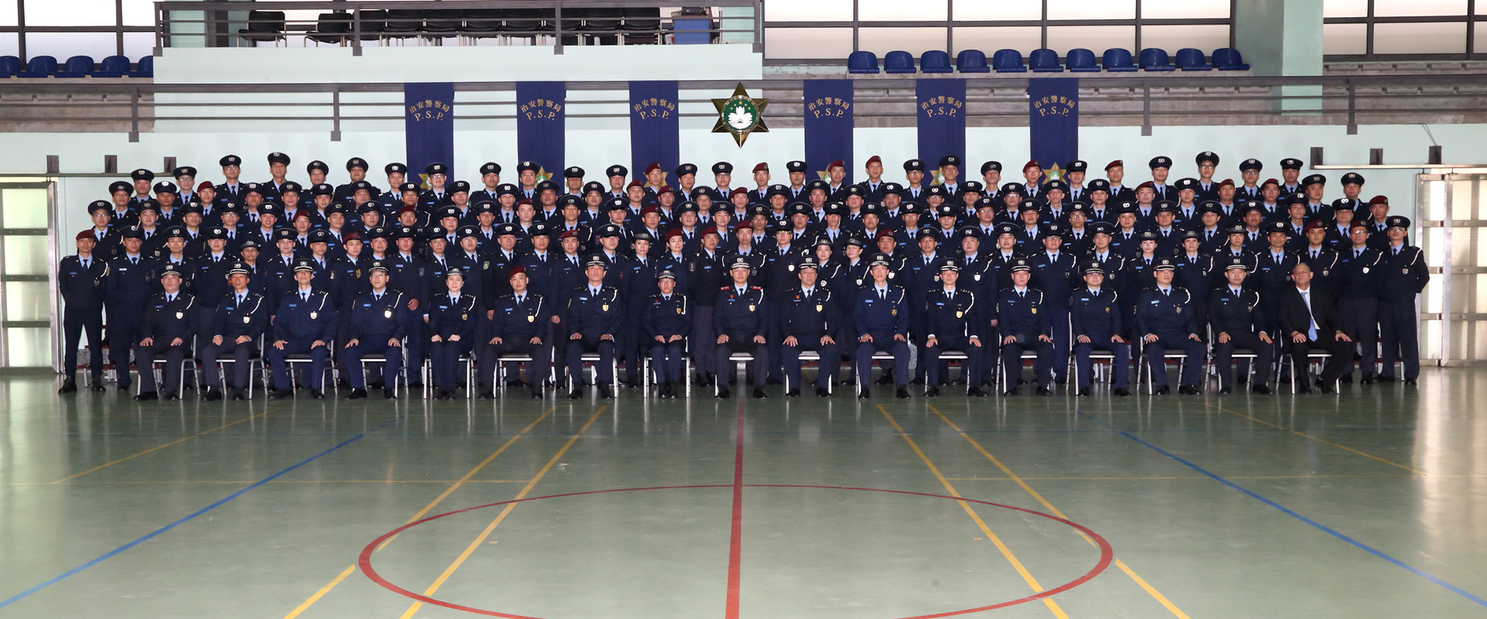今天(4月17日)中午11時,在特警總部室內運動場舉行了首席警員晉升儀式。儀式由治安警察局局長梁文昌警務總監、代副局長吳王碧瑤警務總長及陳民德警務總長主持。出席儀式的還有局內各部門的廳長及負責人,為同僚作出祝賀。