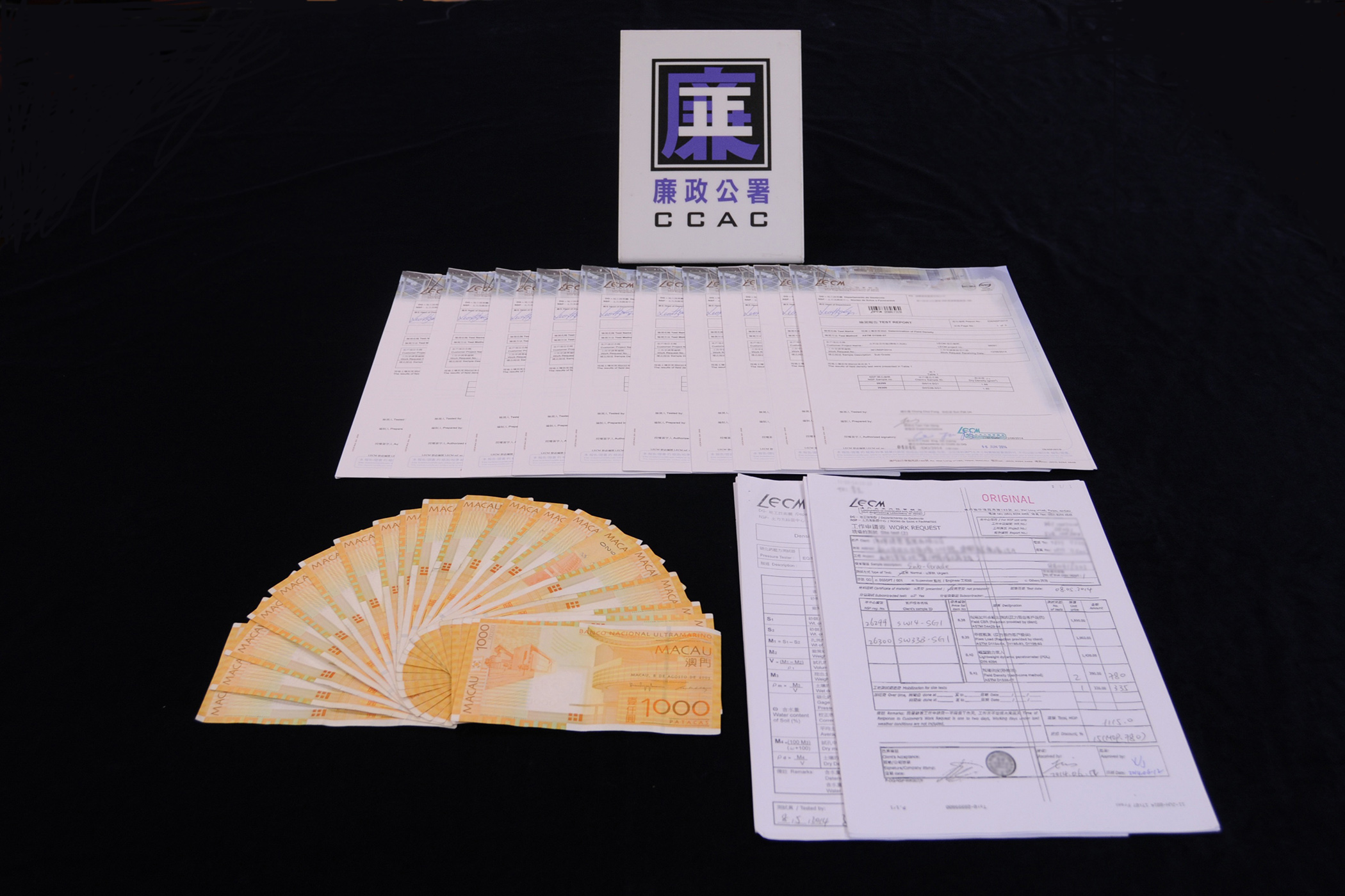 廉政公署揭發兩名澳門土木工程實驗室人員涉嫌收受工程公司人員的賄賂,替工程公司製作多份虛假的土壤檢測報告,有關人士分別涉嫌實施了《刑法典》規定的行賄罪、公務員實施的偽造罪及受賄作不法行為罪,該等罪行可分別科處最高3年、5年及8年徒刑。案件已移送檢察院處理。