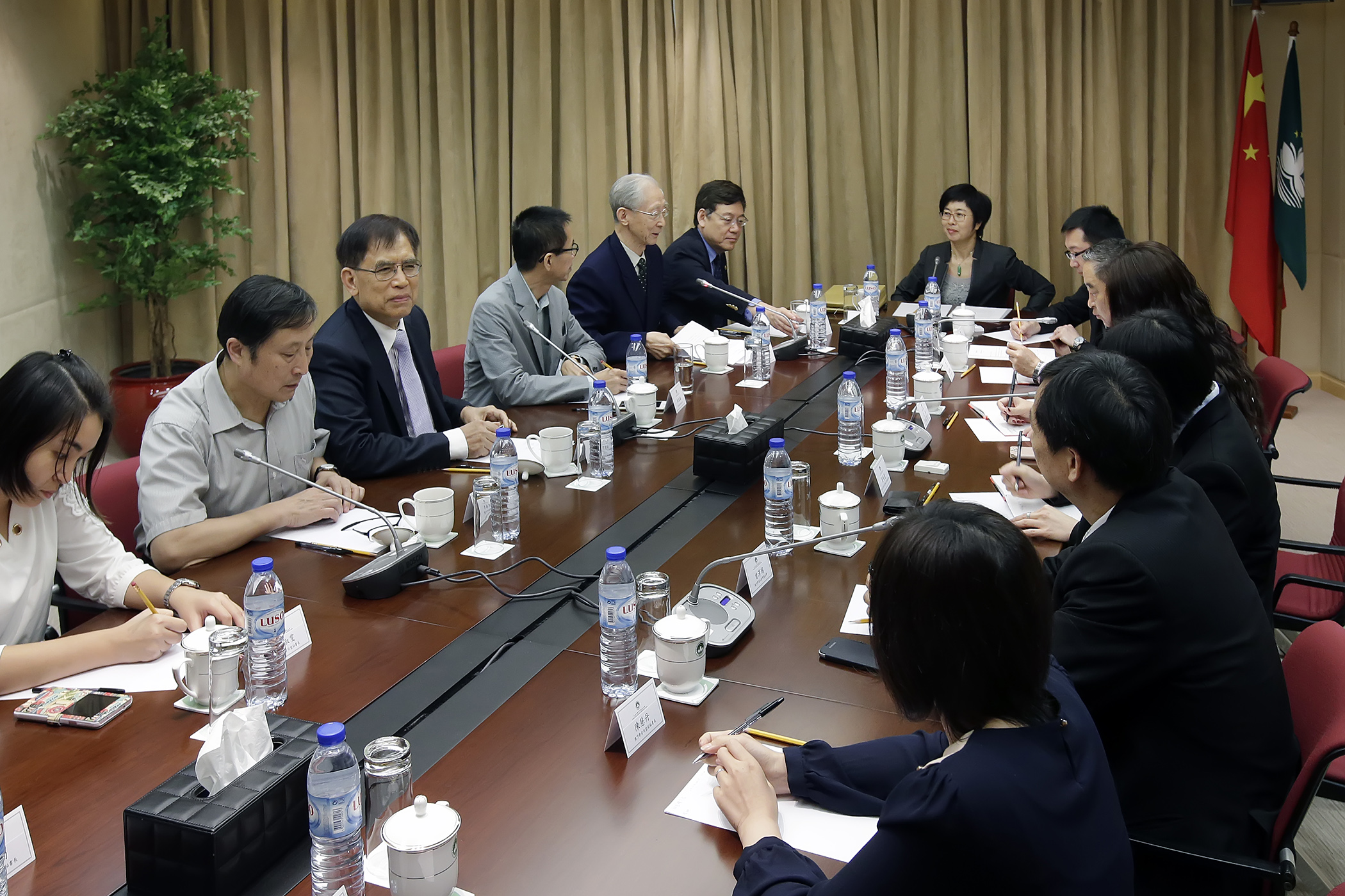 行政法務司司長辦公室代主任張少雄、行政法務司司長辦公室顧問趙向陽、澳門學者同盟副會長鄭國強和李嘉曾、秘書長梁淑雯、常務理事曾澤瑤、蔣朝陽和唐繼宗等一同參與會面。
