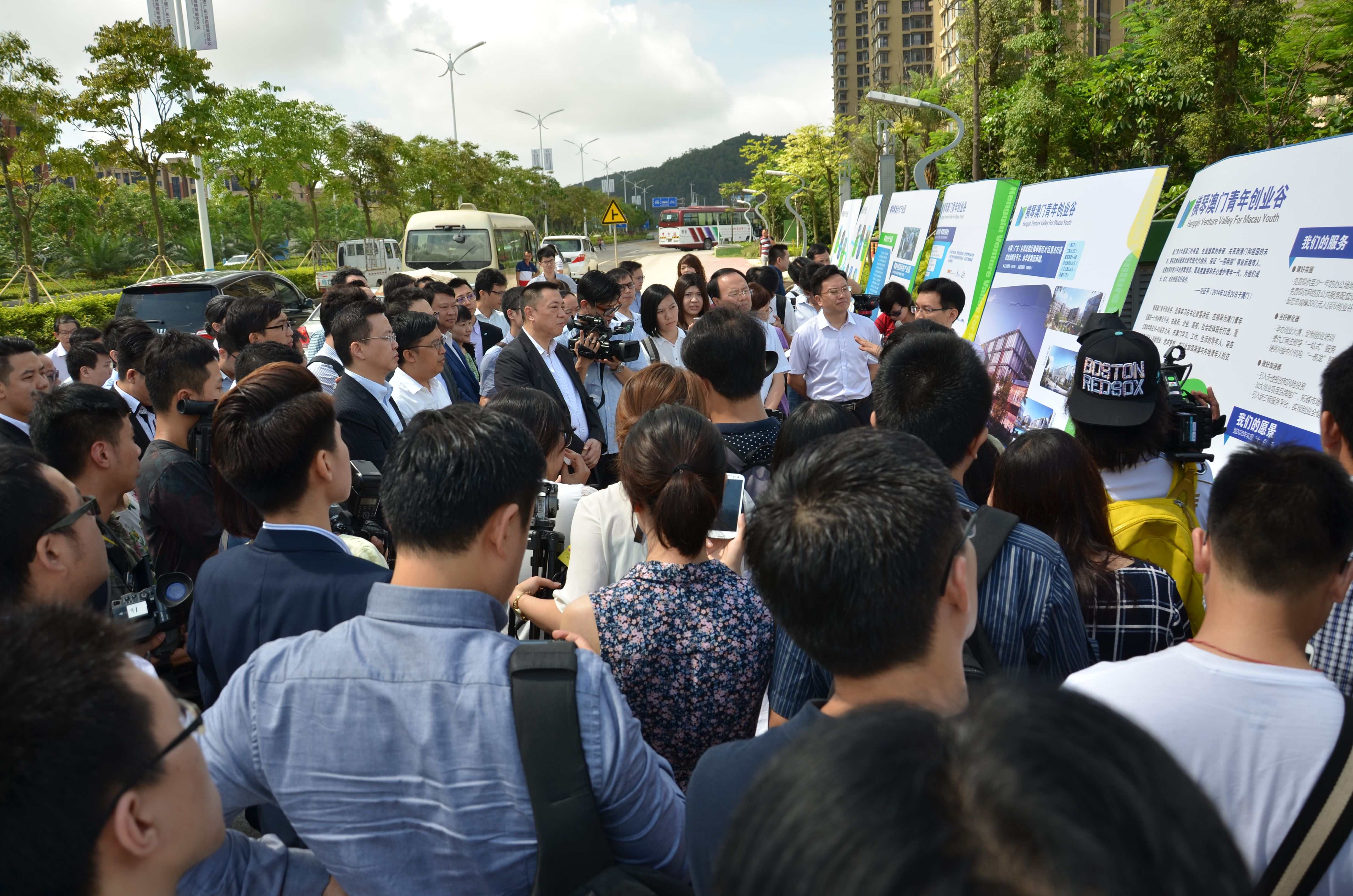 考察團一行約80人,首先到達橫琴片區,實地考察橫琴澳門青年創業谷並聽取橫琴金融投資有限公司常務副總經理趙國沛的介紹。據介紹,橫琴澳門青年創業谷將分為兩個建設階段,首階段計劃在六月交付使用,為澳門和內地青年創業團隊提供辦公空間、創業培訓和輔導、資金籌措諮詢等服務。