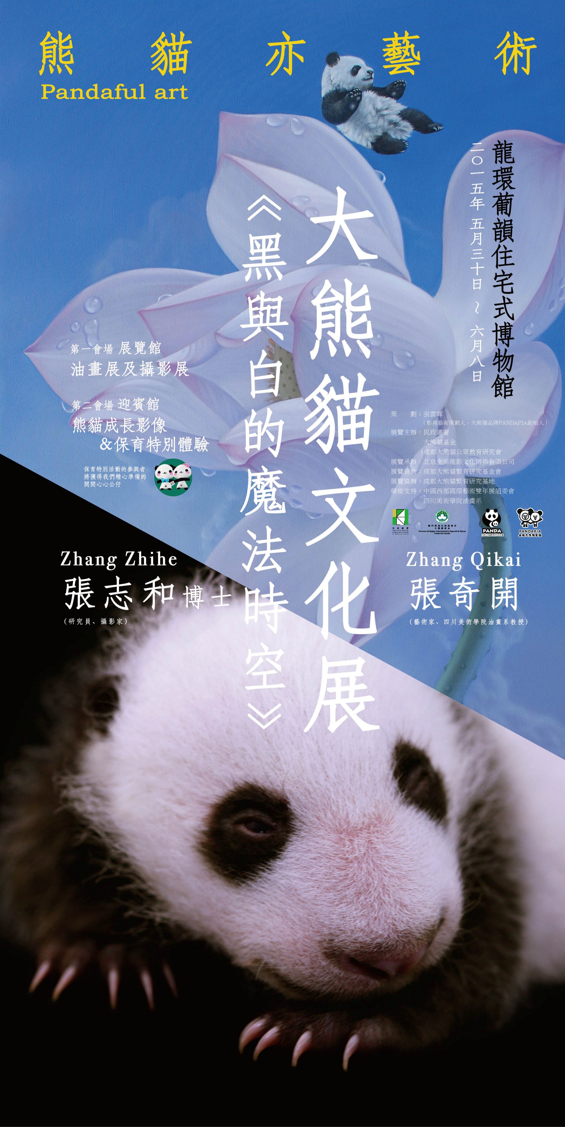 大熊貓作為中國人的一個文化標誌,一個全球認知中國的符號,牠平和、憨直、可愛、珍貴,八百萬年以來堅強地走過物種進化,堪稱勵志典範。“大熊貓文化展《黑與白的魔法時空》──熊貓亦藝術”展覽,旨在把自然界的獨特動物與人類構成的關係,通過藝術的形式表述出來,內容包括藝術家張奇開教授的油畫作品、張志和研究員的攝影作品、熊貓成長影像及保育特別體驗。