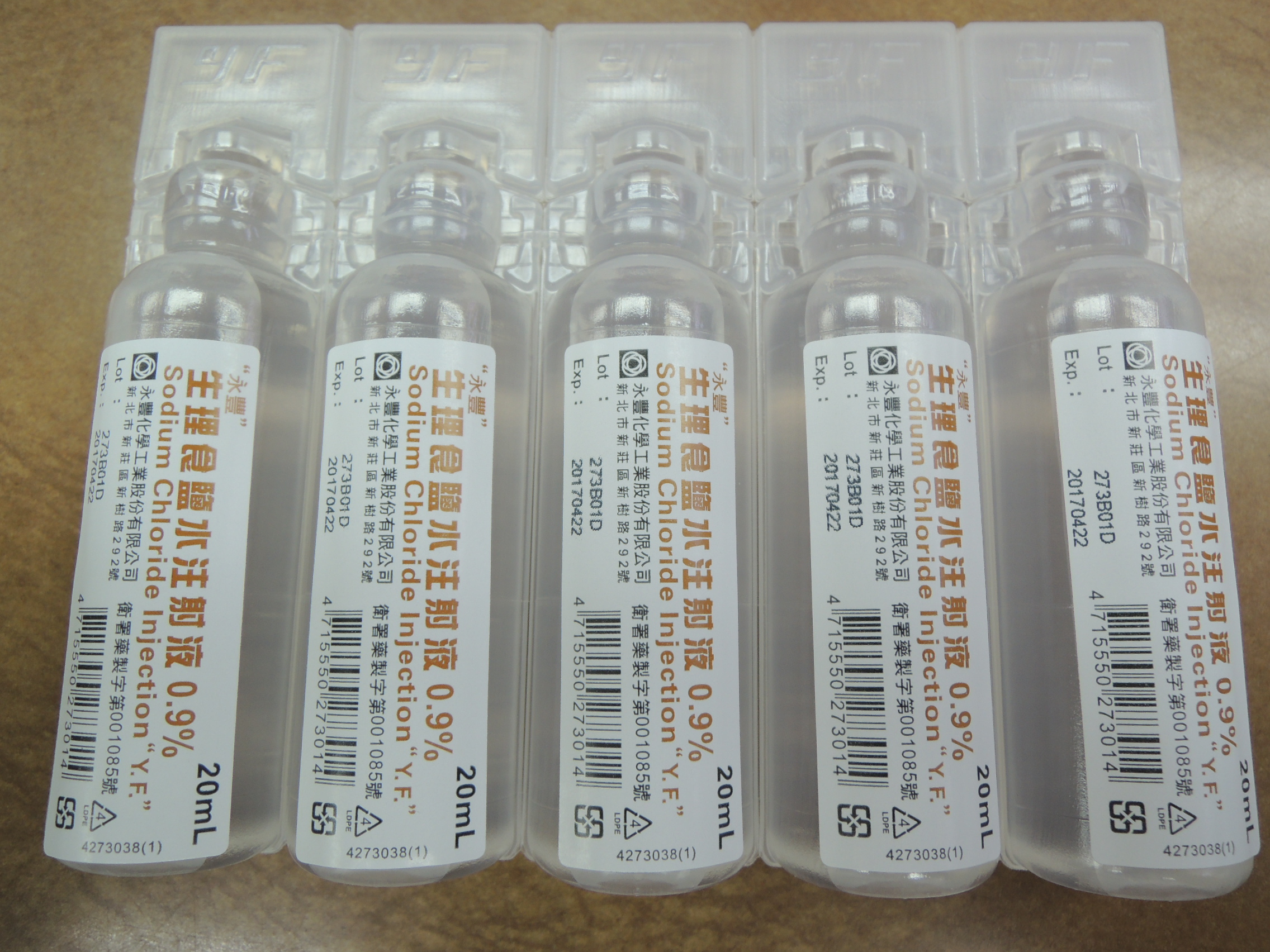根據台灣食品藥物主管機構公告,該機構發現由當地藥物生產商 “永豐化學工業股份有限公司” 所生產、批號為273A79D 的 “永豐生理食鹽水注射液(20mL)” 的無菌試驗結果不符合標準,因此早前已指令生產商回收相關批次藥物,而作為預防措施,該機構亦於2015年6月1日再發出公告,指令該生產商同一生產線的三款藥物--永豐生理食鹽水注射液(20mL)、鈣克康靜脈注射液(10mL)及永豐注射用蒸餾水(10mL及20mL) 須全面回收。