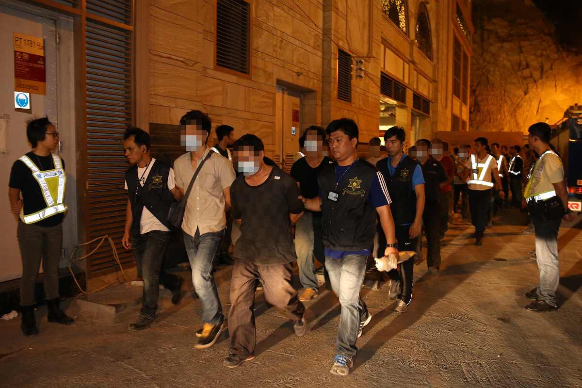 治安警根據情報,指有關建築工地內懷疑有人非法工作,故於昨晚8時到場突擊巡查。在4個小時的巡查行動中,總共派出八十多名警員,合共核查了96名工人身份。期間於氹仔某建築工地查獲18名工人涉及非法工作,持中國護照及中國往來港澳通行證;及查獲3名工人涉嫌過界工作;及後查獲1名澳門居民涉嫌僱用非法勞工。非法工作者年齡介乎18至57歲,月薪由2,500元至14,000元人民幣,均從事搬運及裝嵌工作。