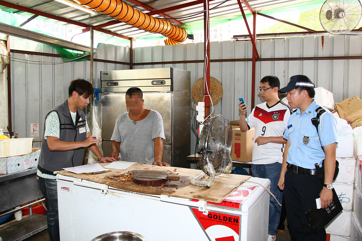 治安警根據情報,指該處懷疑有人非法工作,故於早上10時到場突擊巡查,並發現無牌經營之食品工場。在巡查行動中,合共核查了14名人士身份。期間查獲7名工人涉嫌過界工作,1名工人涉及非法工作;及1名澳門居民涉嫌僱用非法勞工。8名工人時薪為20元澳門幣,均從事煮食及清潔工作。