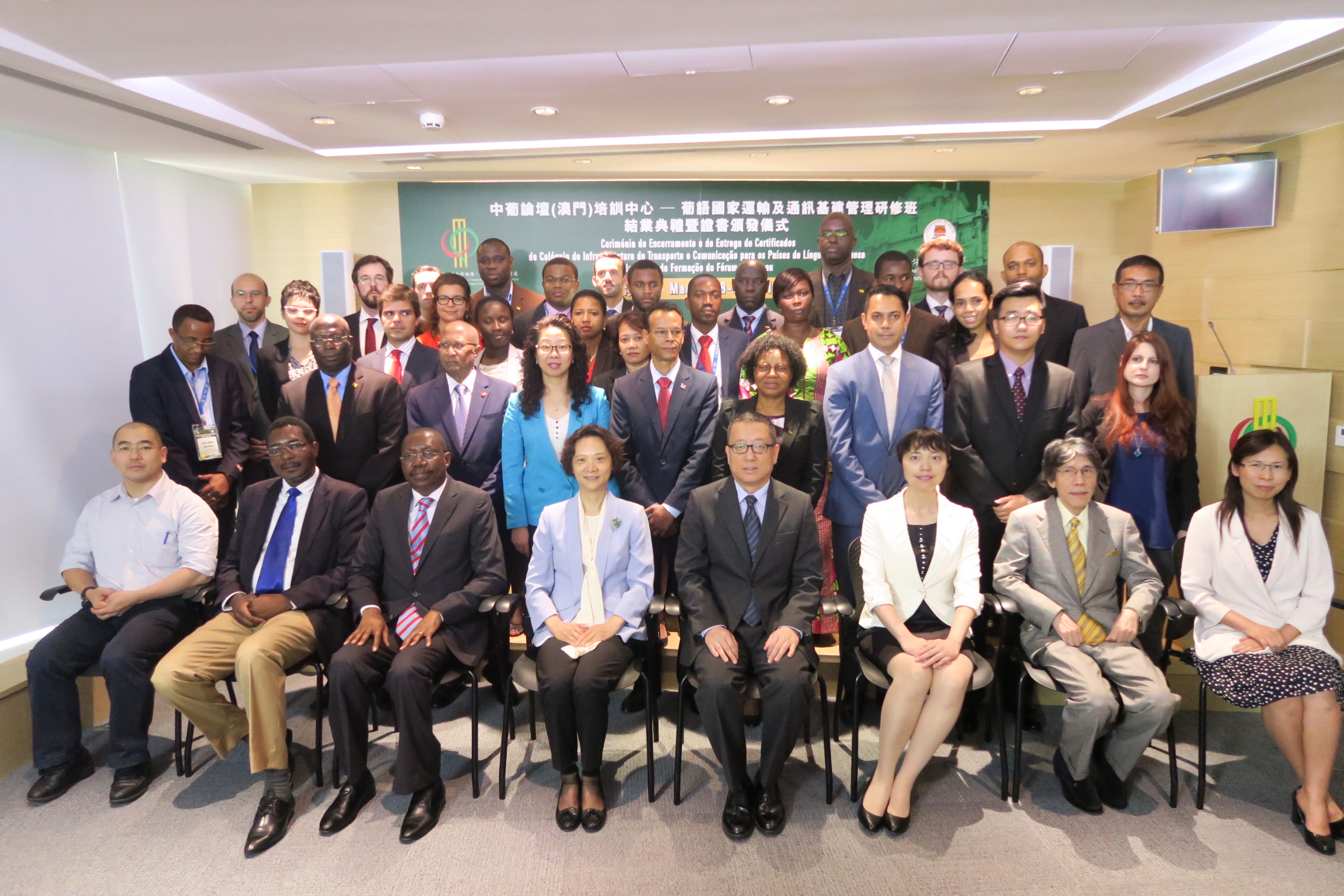 由中葡論壇(澳門)培訓中心主辦、澳門大學承辦的“葡語國家運輸及通訊基建管理研修班”於本月八日中午十二時假中葡論壇(澳門)常設秘書處多功能廳舉行結業典禮並頒發證書。