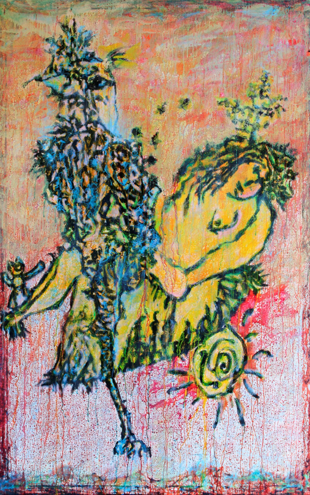 吳方洲是帶有一種原生的自發創作行為的表現主義繪晝,他的藝術表達在潛意識裏總是不按常理出牌,經常直接把內心狀態顯示於畫面上,也許這是內心深處噴發出來的情緒。他必須歷久彌新地進行這種方式的創作,才能時常保持良好的生存原狀,才能不容易被往事和記憶所扭曲。他像是被一種藏在未知的內心深處的潛意識所纏繞,舞動畫筆,塗繪自己真摯的思想和情感,是心靈慰藉的治療過程。