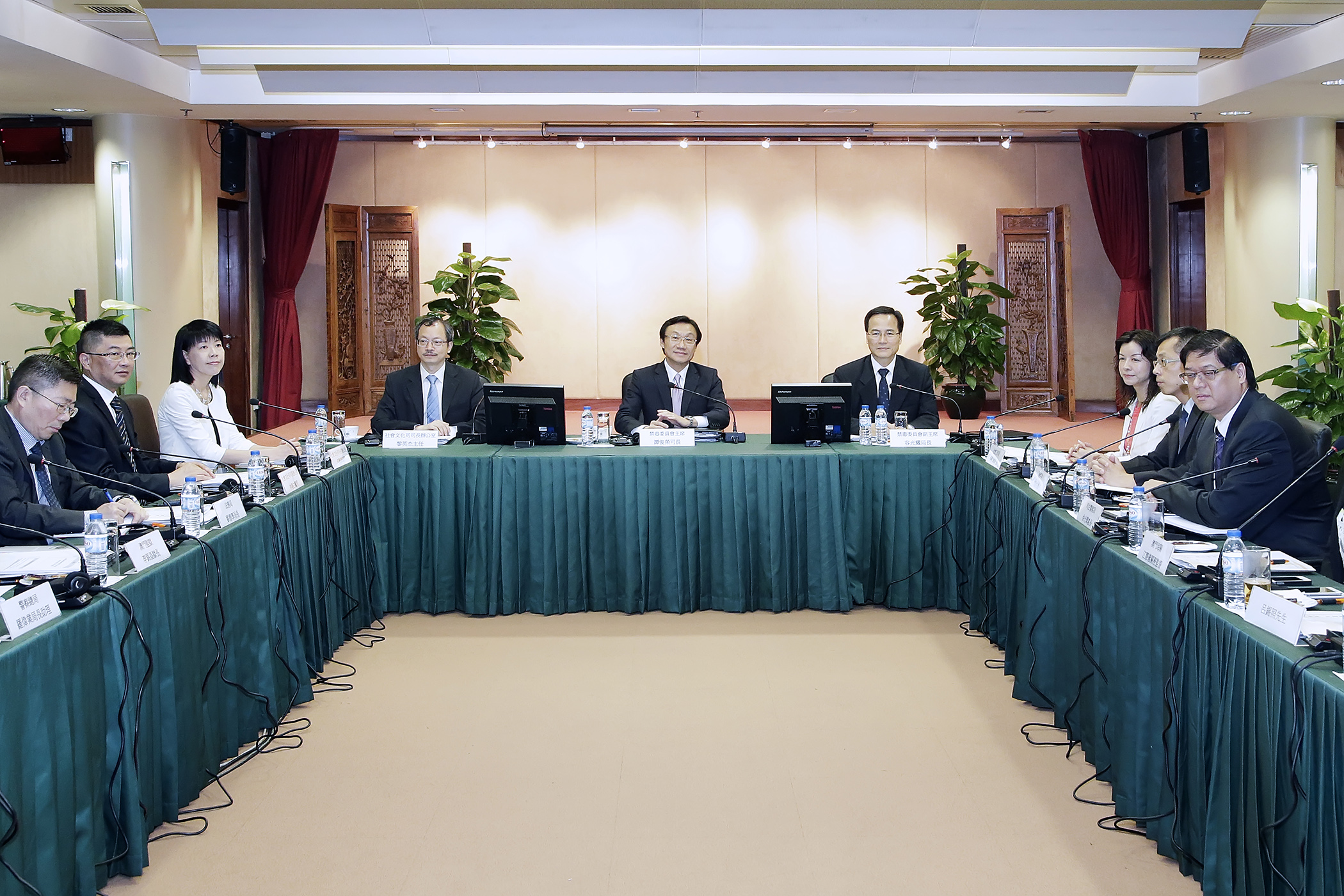 出席會議的還有社會文化司司長辦公室黎英杰主任,禁毒委員會副主席、社會工作局容光耀局長,社會文化司司長辦公室何麗鑽顧問、法務局劉德學局長、澳門監獄李錦昌獄長、警察總局羅偉業局長助理、保安司司長辦公室張嫻顧問、社會工作局黃艷梅副局長、教育暨青年局郭小麗副局長、檢察院陳賢松廳長、司法警察局余光輝處長、澳門海關江慧儀關務監督、衛生局何志榮主任、教育暨青年局周佩玲主任、澳門基督教青年會關淑鈴總幹事、聖公會澳門社會服務處李國豪總監、澳門戒毒康復協會Augusto Nogueira主席、澳門中華教育會鄭洪光秘書長、澳門青年挑戰陳志寧副總幹事、澳門醫護志願者協會黃劍虹會長、澳門基督教新生命團契 S.Y 部落劉展瑞主任、澳門婦女聯合總會離島服務站伍安琪主任、呂錫照醫生、梁玉華女士,以及梁少培先生。