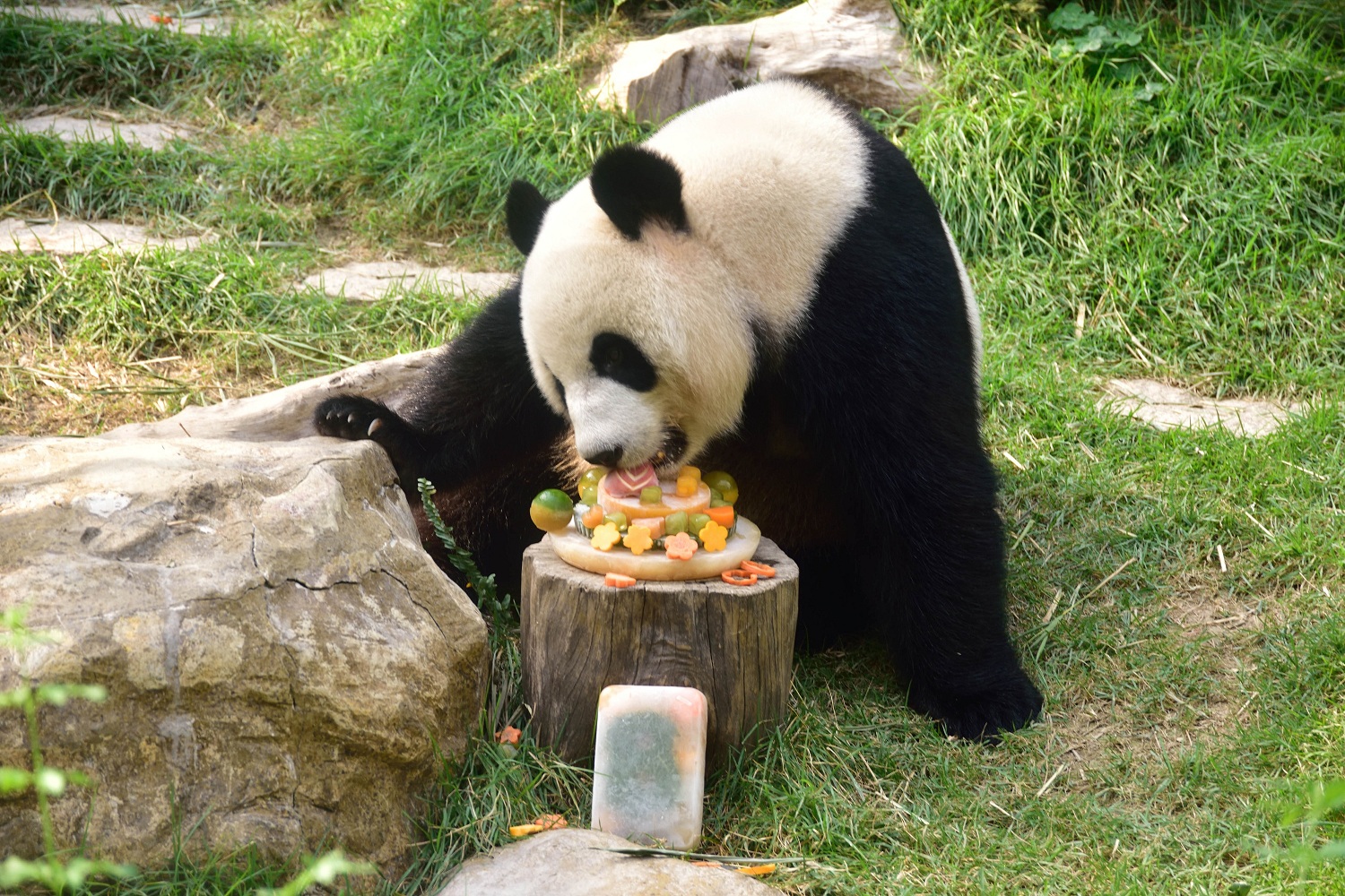 今日(七月五日)是“心心”來澳後的第一個生日,適逢為星期日,大大小小的熊貓粉絲帶著祝福的心意來到大熊貓館,與“心心”慶祝八歲生日。飼養員更花心思特別製作一個適合大熊貓的生日蛋糕,蛋糕用果汁冰製作,再以高纖維餅乾作裝飾,讓“心心”食得開心又健康。小朋友見到“心心”食生日蛋糕均十分雀躍,並祝願大熊貓在澳門能生活愉快。