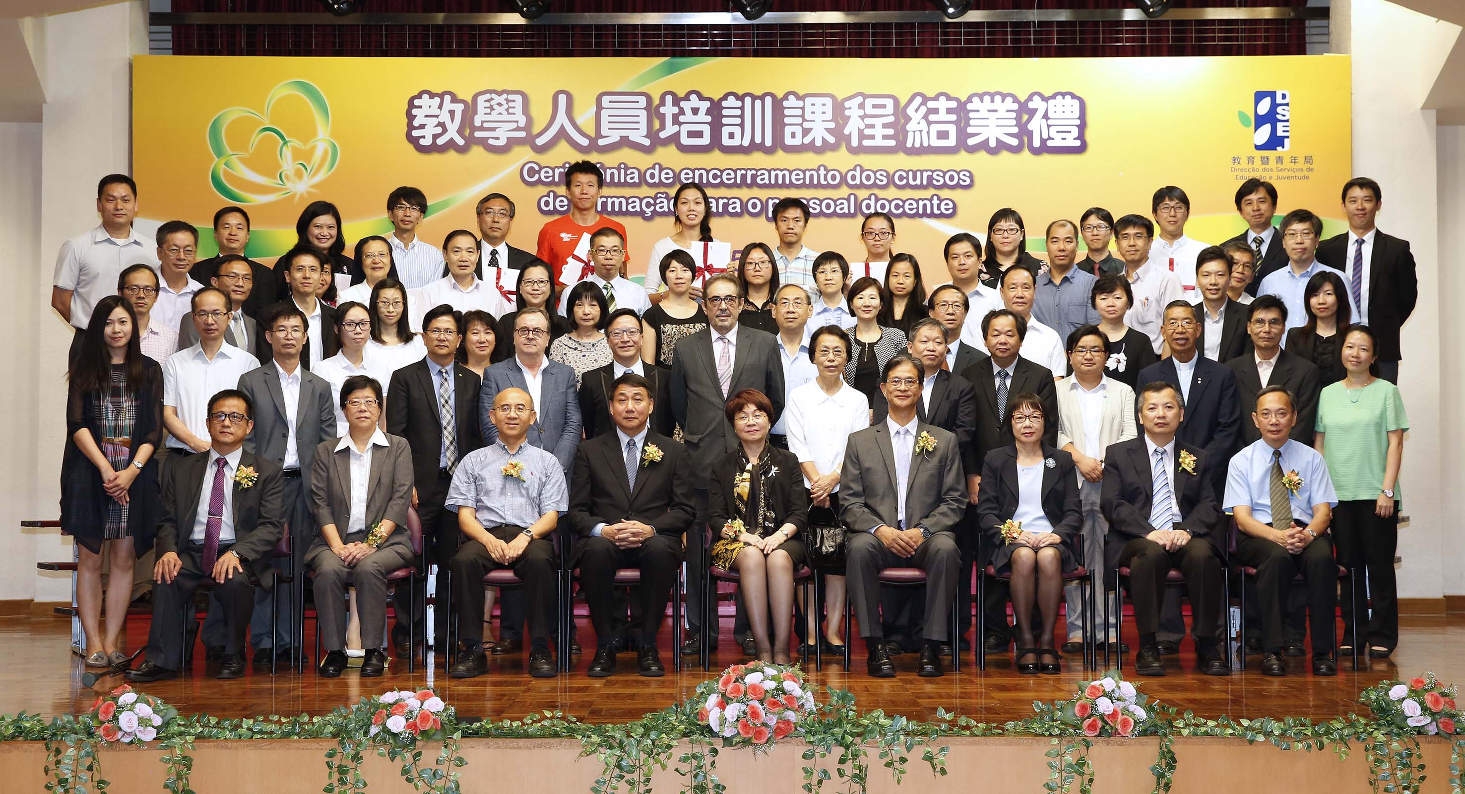 教青局局長梁勵、中央人民政府駐澳門特別行政區聯絡辦公室文化教育部副部長張曉光、社會文化司司長辦公室顧問惠程勇、教青局副局長郭小麗及代副局長黃懿蓮、澳門大學教育學院院長范息濤及副院長鄭振偉、澳門天主教學校聯會副會長楊子秋、澳門中華教育會副理事長王國英,以及培訓機構代表及導師、各校校長及參加培訓課程的200多名教學人員出席了典禮。