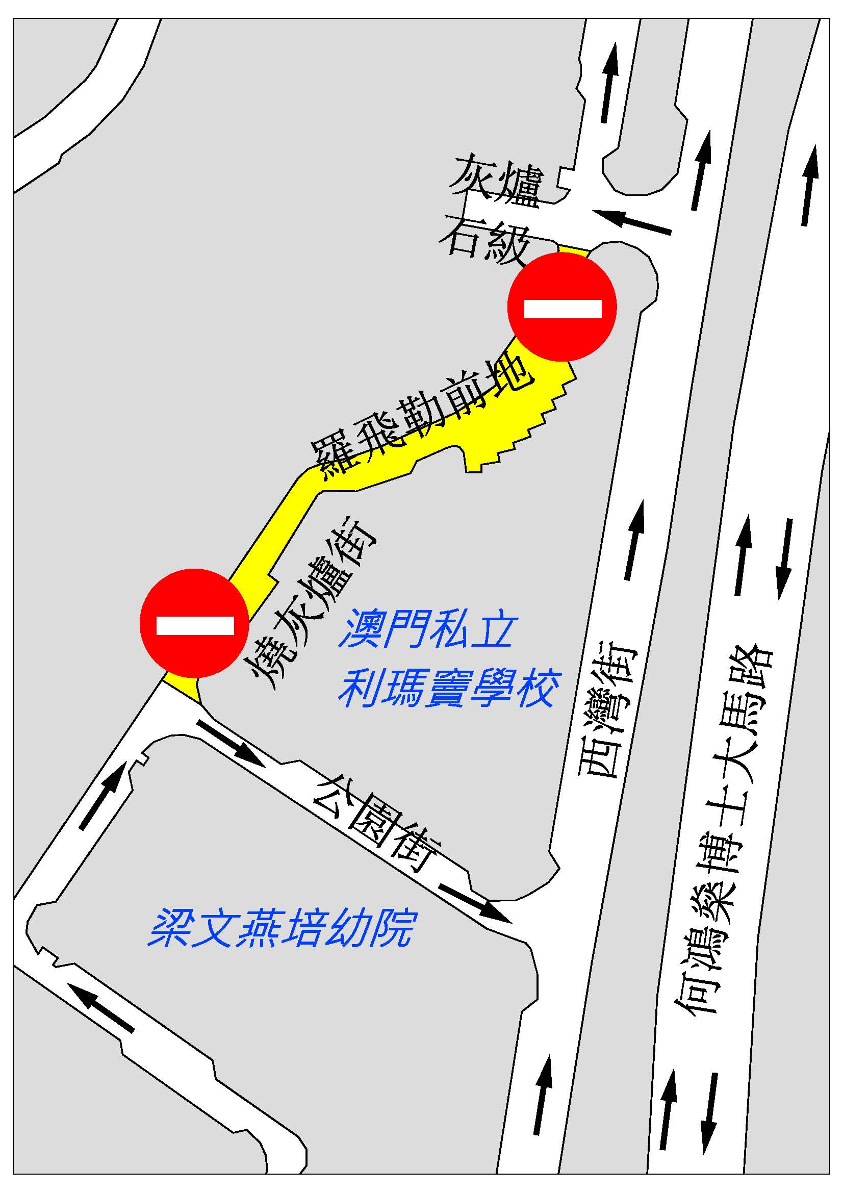 配合自來水公司更換水管,介乎灰爐石級與公園街之間的一段羅飛勒前地及燒灰爐街,本月27日(周一)起實施封閉交通,同時,相關路段部分咪錶及電單車泊車位暫停使用,為期25日。
