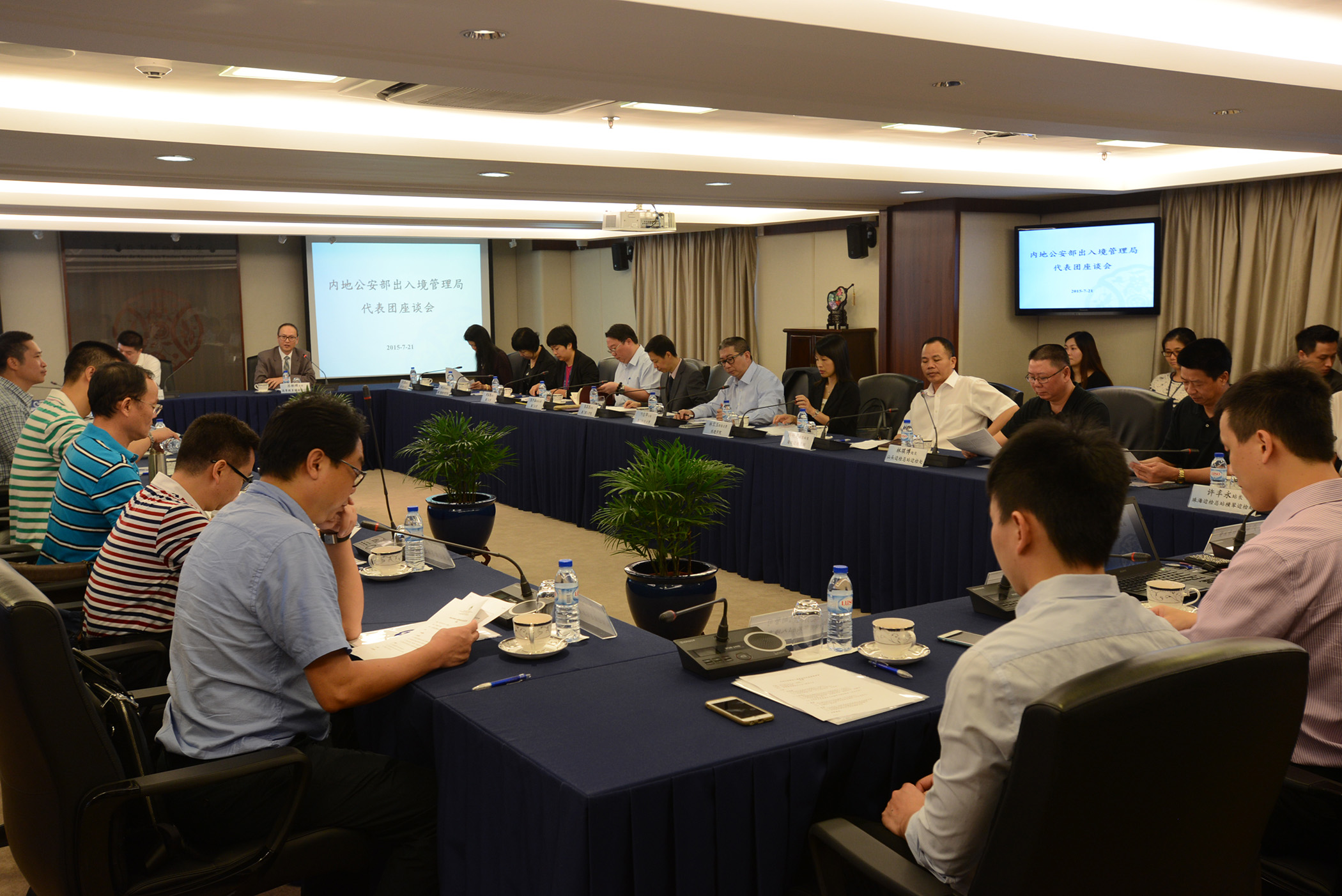 由公安部出入境管理局政治處尹計芳副主任率領的代表團,成員包括來自北京、天津、上海、廣東、福建、海南等多個省市的邊檢站代表一行十五人,日前在治安警察局出入境事務廳代表的陪同下,到訪高等教育輔助辦公室,並與本澳獲准在內地招生的六所高等院校代表舉行座談會。期間受到高等教育輔助辦公室蘇朝暉主任及相關人員的熱情接待,雙方就內地學生出入境的程序進行交流。