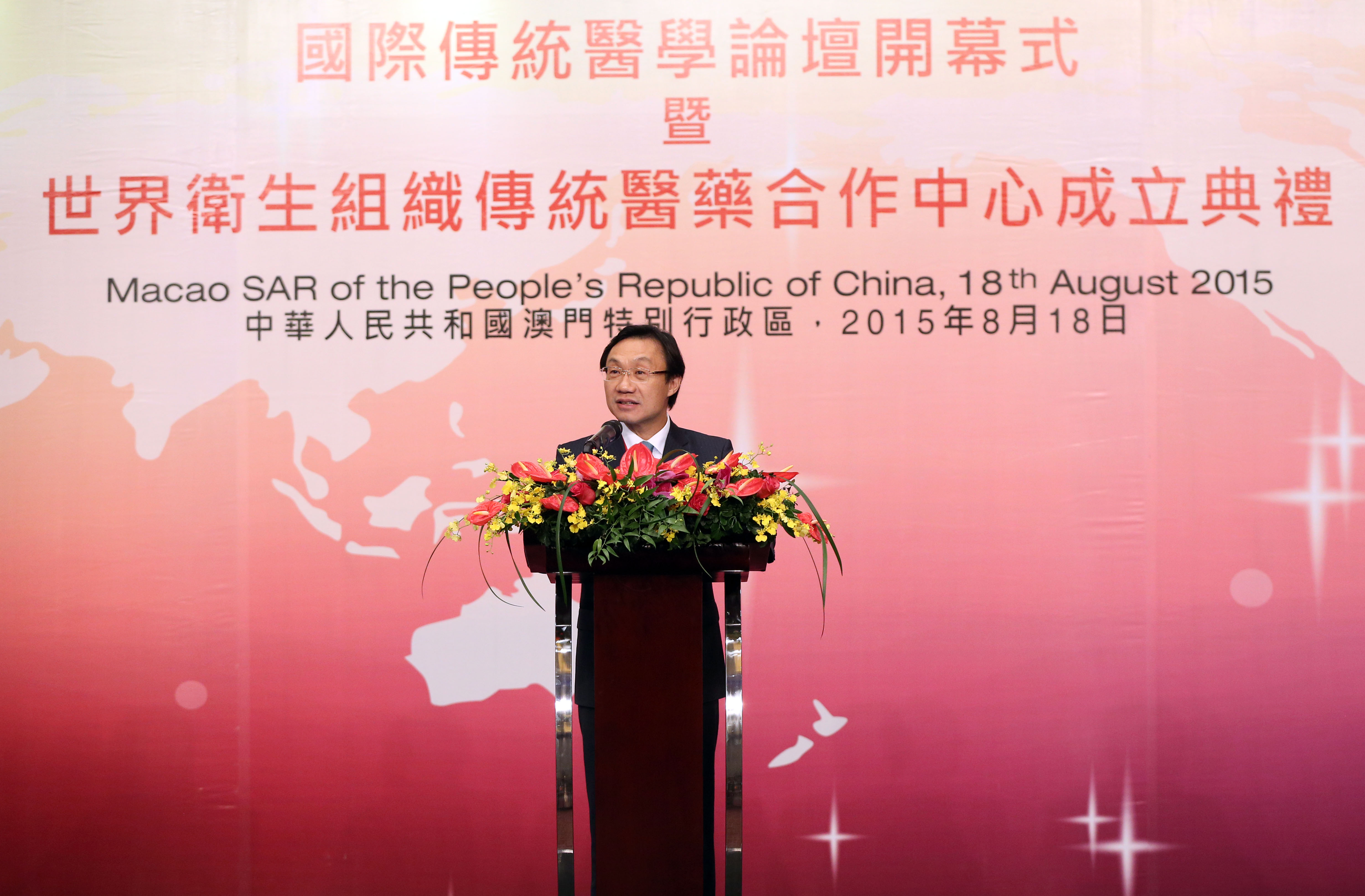 社會文化司司長譚俊榮今(18)日上午出席國際傳統醫學論壇開幕式暨世界衛生組織傳統醫藥合作中心成立典禮,並在高層會議上發表主旨演講。