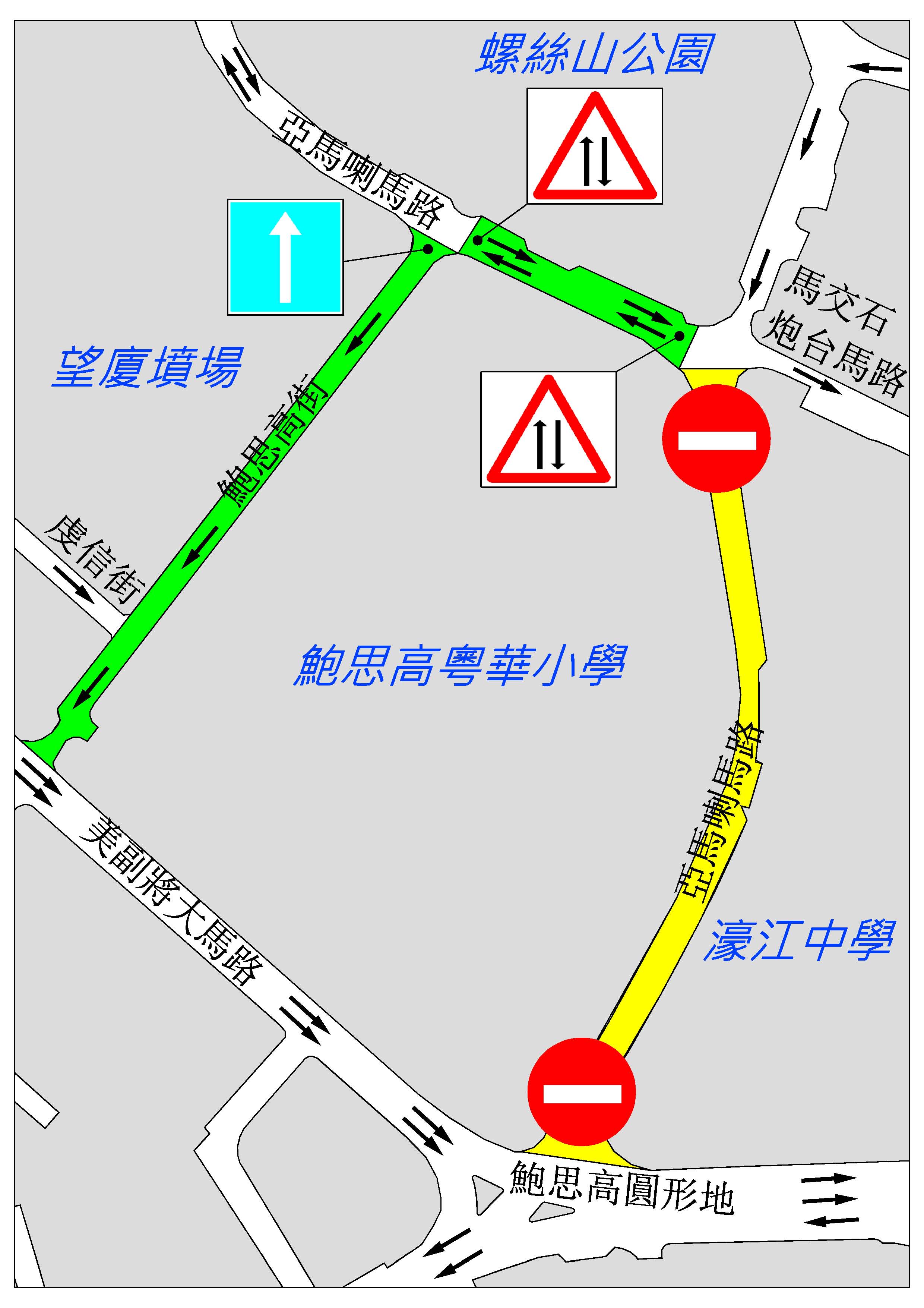 因應進行路面重鋪工作,介乎馬交石炮台馬路與鮑思高圓形地之間的亞馬喇馬路本月20日(周四)至22日(周六),每日上午9時30分至下午5時封閉交通,禁止車輛駛入,同時,鮑思高街會實施反方向行車,車輛可由亞馬喇馬路往美副將大馬路方向行駛。亞馬喇馬路相關路段則於本月23日(周日)實施有限度通車。工程期間,禁止車輛停泊相關路段的上落客貨區及電單車泊車位。