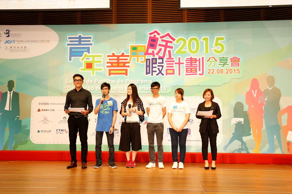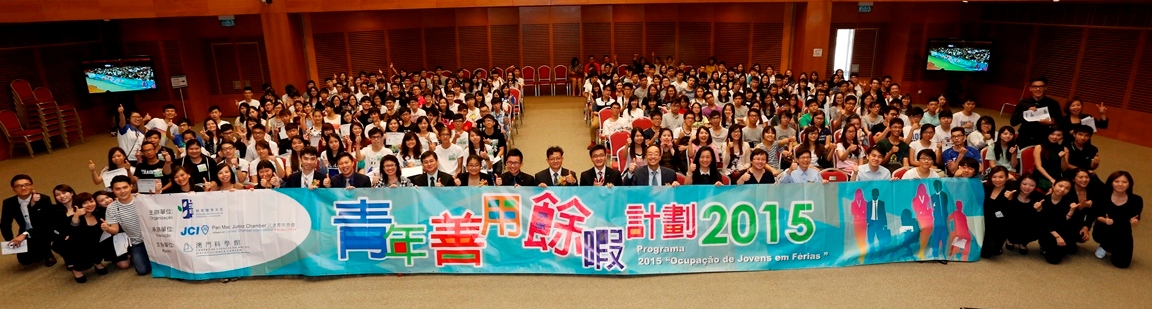 為配合及落實本年特區政府“開展豐富閒暇活動”的施政方針,同時加強青年生涯輔導工作,由教育暨青年局主辦、汎澳青年商會承辦,並由澳門多個公共部門和私營機構共同參與推行的“青年善用餘暇計劃2015” 圓滿結束。是次活動共吸引了1,666名青年報名參加,並甄選了476名青年參與是次計劃。參加者於計劃期間參與了一系列的生涯規劃培訓及實習活動,題述計劃已於8月21日正式結束,並於8月22日(星期六)下午3時假澳門科學館舉行了相關分享會。