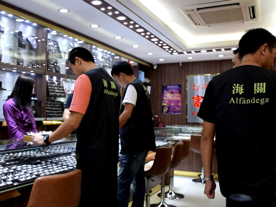 澳門海關近期接獲品牌權利人的舉報,指位於澳門中區及北區某連鎖珠寶金行集團旗下的多間店舖內,涉嫌售賣假冒其公司品牌的產品。海關收到舉報資料後,立即展開深入調查,並核實有關品牌商標已在澳門特區政府經濟局作出合法註冊登記。海關知識產權廳偵查人員鎖定屬同一集團的多間涉案店舖,採取不定期的監察。於九月一日,海關認為時機成熟,偵查人員進行突擊搜查行動,行動中發現八間同一店舖名稱的連鎖珠寶金行均有售賣侵權產品,涉案九名人士被帶返海關總部協助調查。