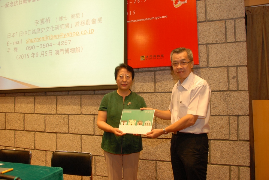 為紀念抗日戰爭勝利七十周年,文化局澳門博物館及澳門大學社會科學學院歷史系聯合舉辦四場系列專題講座,首場講座《日本侵華老兵口述證言的訪談與研究──紀念抗日戰爭勝利七十周年》於日前(九月五日)進行,由吉林師範大學教授、日本櫻美林大學講師、日中口述歴史文化研究會常務副會長李素楨主講,講座反應熱烈,座無虛席。