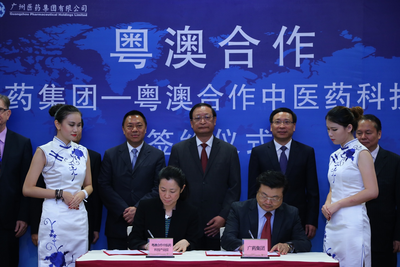 粵澳合作中醫藥科技產業園招商工作取得新一個重大成果,與內地知名大型中醫藥集團—廣藥集團簽署合作框架協議。國家衛計委副主任、國家中醫藥管理局王國強局長,澳門特區經濟財政司梁維特司長等共同見證簽署儀式。