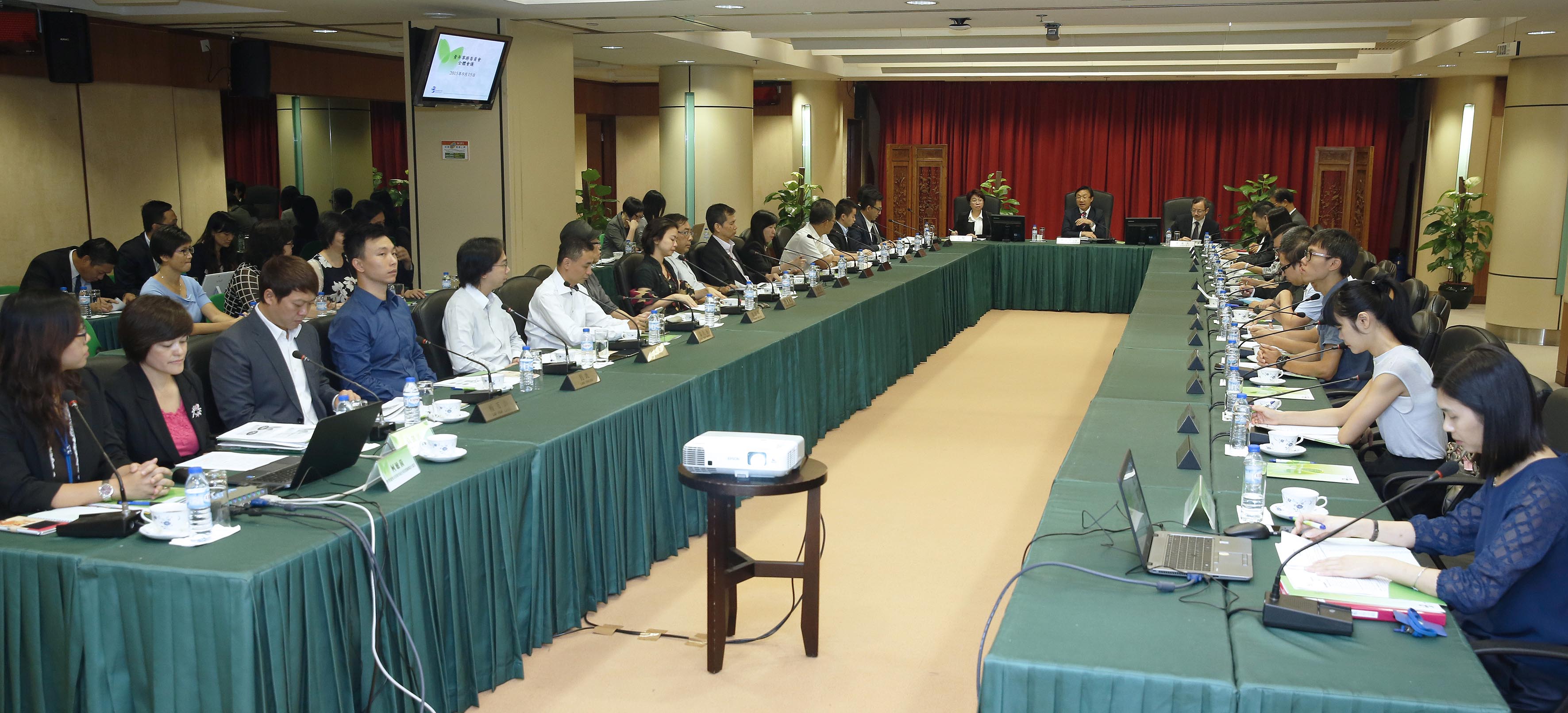 青年事務委員會於9月15日上午在教育暨青年局一樓仲尼堂召開全體會議。會議由青年事務委員會主席、社會文化司司長譚俊榮主持。會議議題包括簡報青年政策的執行情況,簡介藝術教育活動,簡介青年社團年度活動資助計劃開展情況,並聽取委員意見和建議。