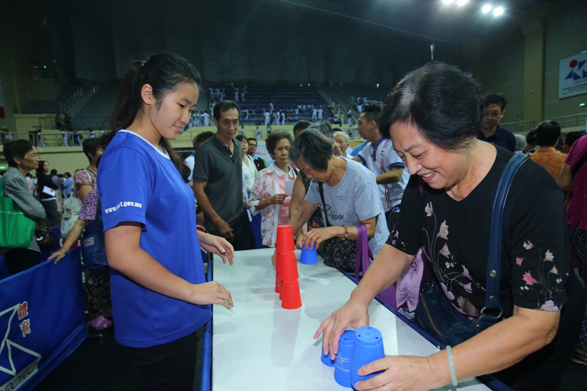 由體育發展局和澳門長者體育總會合辦、澳門街坊會聯合總會、澳門工會聯合總會、澳門婦女聯合總會和澳門理工學院長者書院協辦的“2015全澳長者運動日”,已於今日(9月20日)在塔石體育館圓滿舉行,合共吸引了超過2,000人次出席,設有8項康體活動及3個體測體驗區,讓長者與其家人一同參與,享受運動帶來的歡樂。