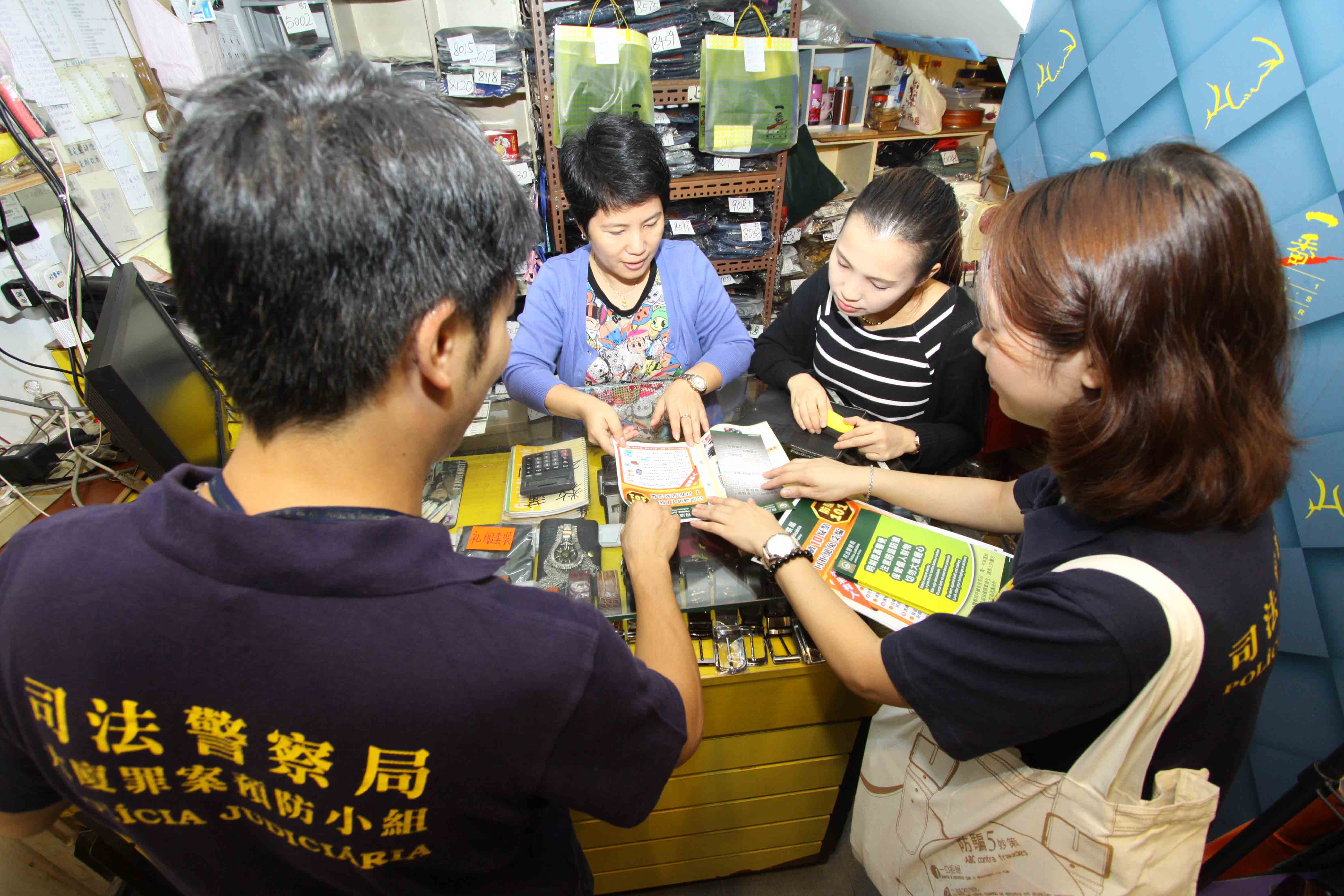 “國慶節”期間將會有大批旅客前來本澳旅遊及消費,街道及商舖人流絡繹不絕,不法之徒往往趁人多擠迫時犯案。為加強市民和商戶的防範意識,司法警察局展開商舖防盜防騙宣傳工作,呼籲他們提高警惕,免受犯罪侵害。