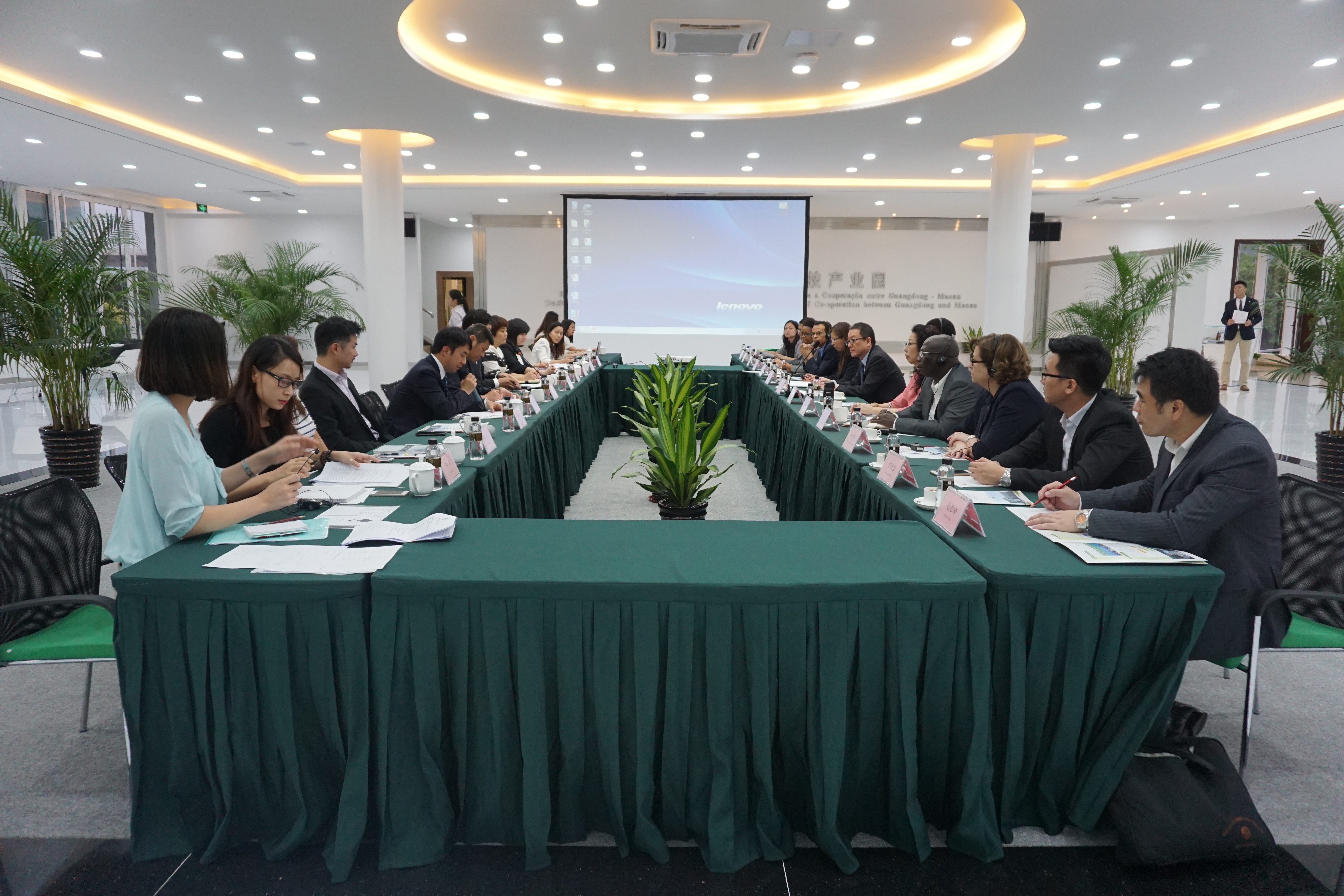 粵澳合作中醫藥科技產業園“國際交流合作中心”自今年六月底揭牌後,產業園與中國─葡語國家經貿合作論壇(澳門)常設秘書處及多個葡語國家派駐代表進行了多次會晤,初步明確了雙邊合作意向,目前合作洽談進入到實質階段。10月9日,“中葡論壇”及葡語國家派駐代表考察產業園及進行座談會,進一步瞭解產業園的發展方向及探討彼此的合作空間。