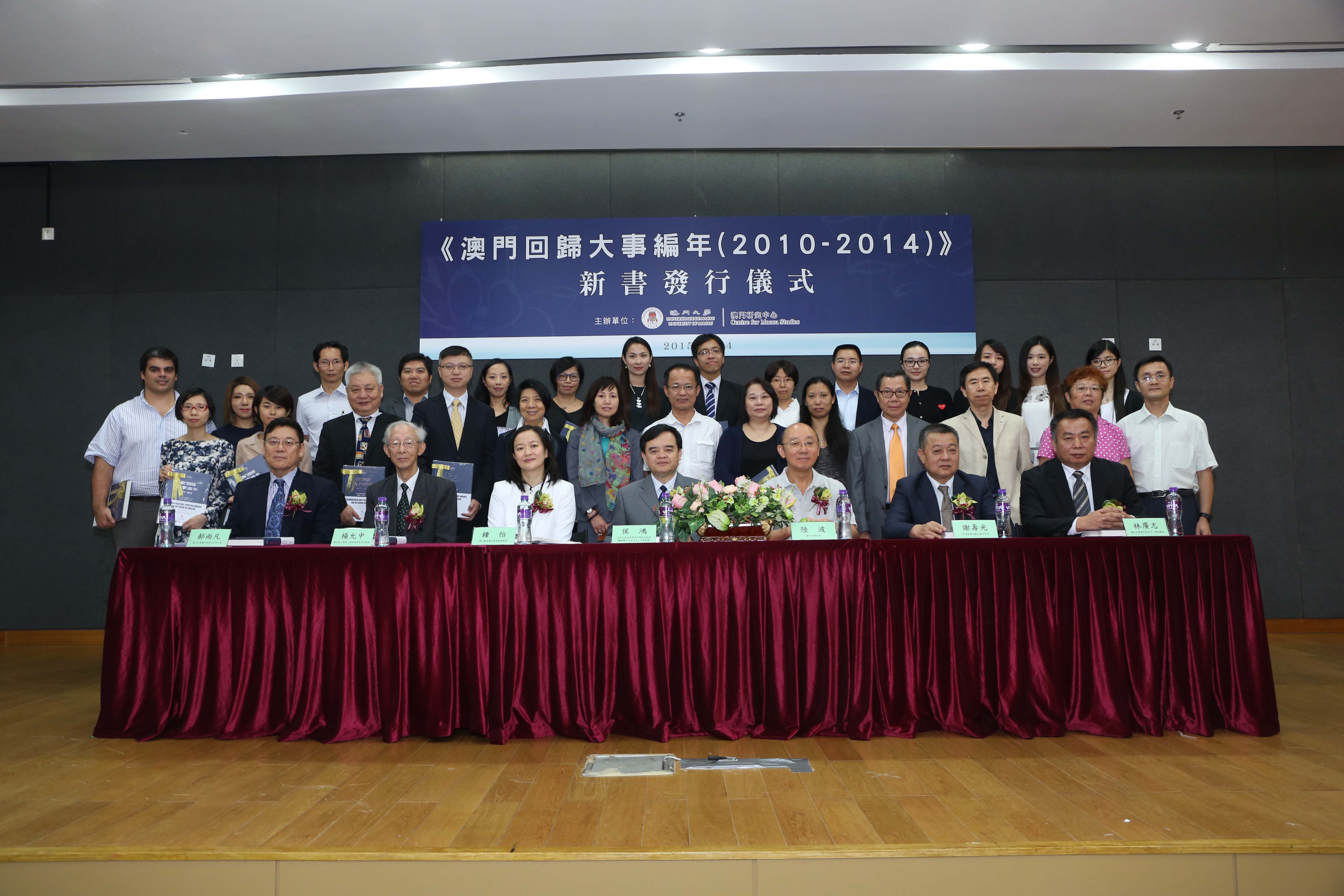 中央人民政府駐澳門特別行政區聯絡辦公室研究室主任級助理侯鴻、澳門基金會行政委員會委員鍾怡、澳門日報社長陸波、澳門理工學院一國兩制研究中心楊允中教授、社會科學文獻出版社社長謝壽光,澳大澳門研究中心代主任郝雨凡、林廣志博士等出席儀式,見證新書面世,並向澳門中央圖書館、澳大、澳門科技大學、澳門理工學院等多所澳門高校的圖書館代表、多個澳門研究機構及社團代表贈書。