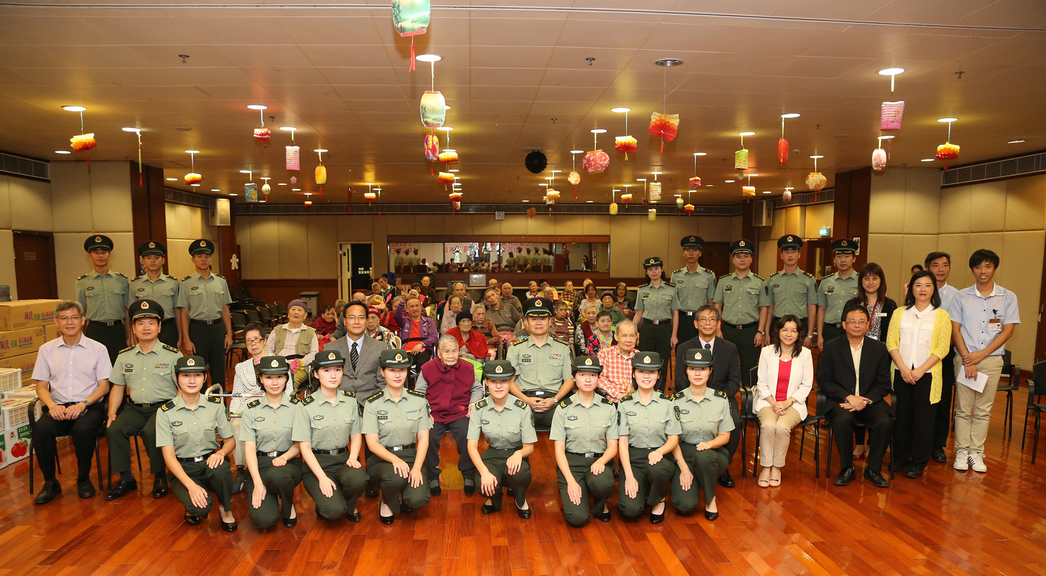10月19日下午,駐澳門部隊副參謀長高志軍以及20餘名官兵代表,在澳門社會工作局局長容光耀和工作人員的陪同下,走進澳門黑沙環明暉護養院開展“慰問長者”活動。