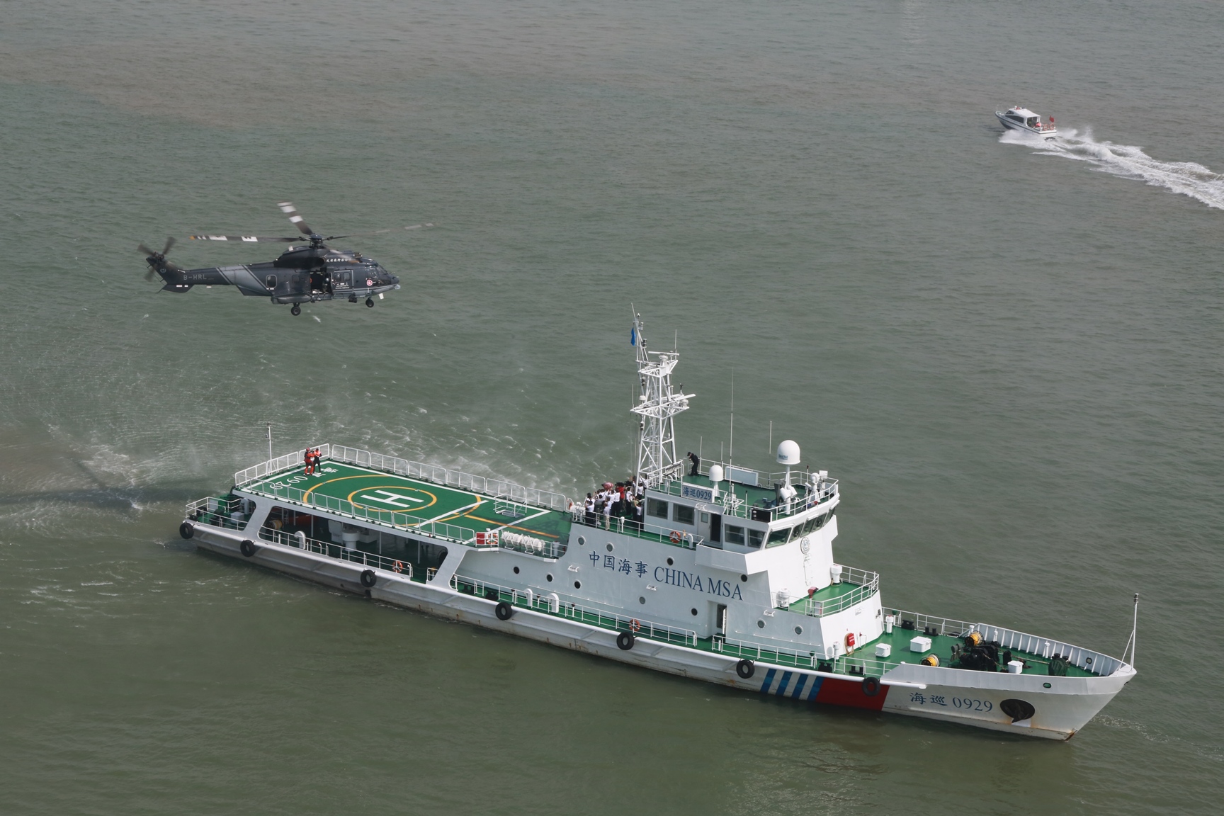 演習歷時一個半小時,各單位迅速對高速客船旅客進行安全轉移,同時透過海空力量確定四名落水人員的位置後,分別用固定翼飛機和直升機救起落水人員,重傷船員亦由直升機及時轉移救治。現場的消防船和清污船則指導船舶自救滅火及現場清污。最後,參演的船舶和飛機按照順序列隊接受了檢閱。