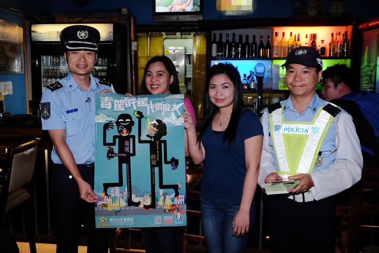 「2015交通安全推廣」活動陸續展開,治安警察局為提高廣大市民的交通安全意識,於11月7日晚在宋玉生廣場酒吧街一帶進行預防毒駕醉駕之宣傳活動,藉此向市民及旅客推廣切勿酒後駕駛、遠離毒品及交通安全訊息。隨後並針對酒後駕駛及超速等行為展開交通檢控行動。治安警察局冀透過宣傳、教育及檢控三管齊下,加強道路使用者的守法意識,從而減少交通意外的發生。