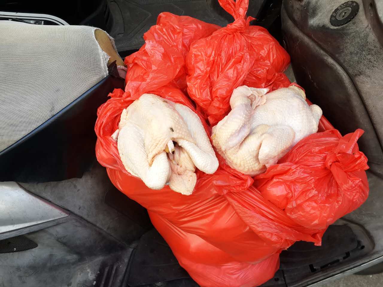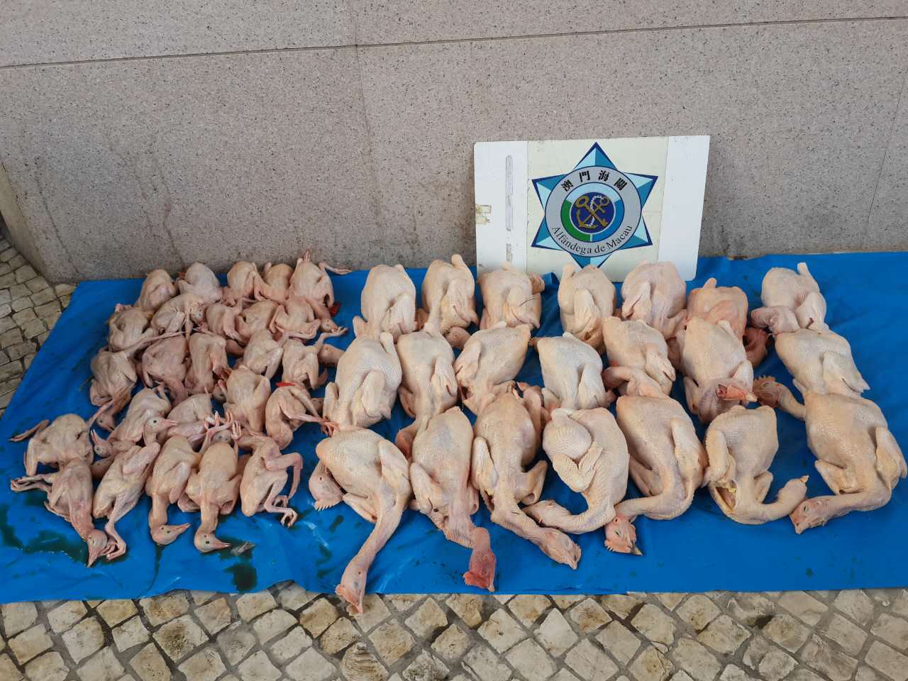 在十一月九日上午,海關行動管理廳關員在巡查關閘廣場附近發現兩名剛從內地回澳的中年女子,各攜有一袋物品,神情有異。於是,關員對該兩名女子進行監視,其後該兩名女子將有關物品運往澳門關閘廣場附近海南花園地下,期後,一名男子出現並取走該兩袋物品,帶到附近華大新村第三街行人道旁,並準備以電單車運送離開時,為恐防該男子把這些收集的物品運離現場,關員即時上前截停並向其表示身份,涉案男子姓關,55歲,在得到關姓男子同意的情況下,即場檢查這些經由水客收集的物品,現場發現全為已屠宰的雞隻及已屠宰乳鴿,其後連同關姓男子一同將這些物品,帶到關閘民政總署衛生監督部記錄重量,當中已宰雞隻有21隻(重23公斤)及已宰乳鴿30隻(重7公斤),相關物品已即時交由民政總署作處理。