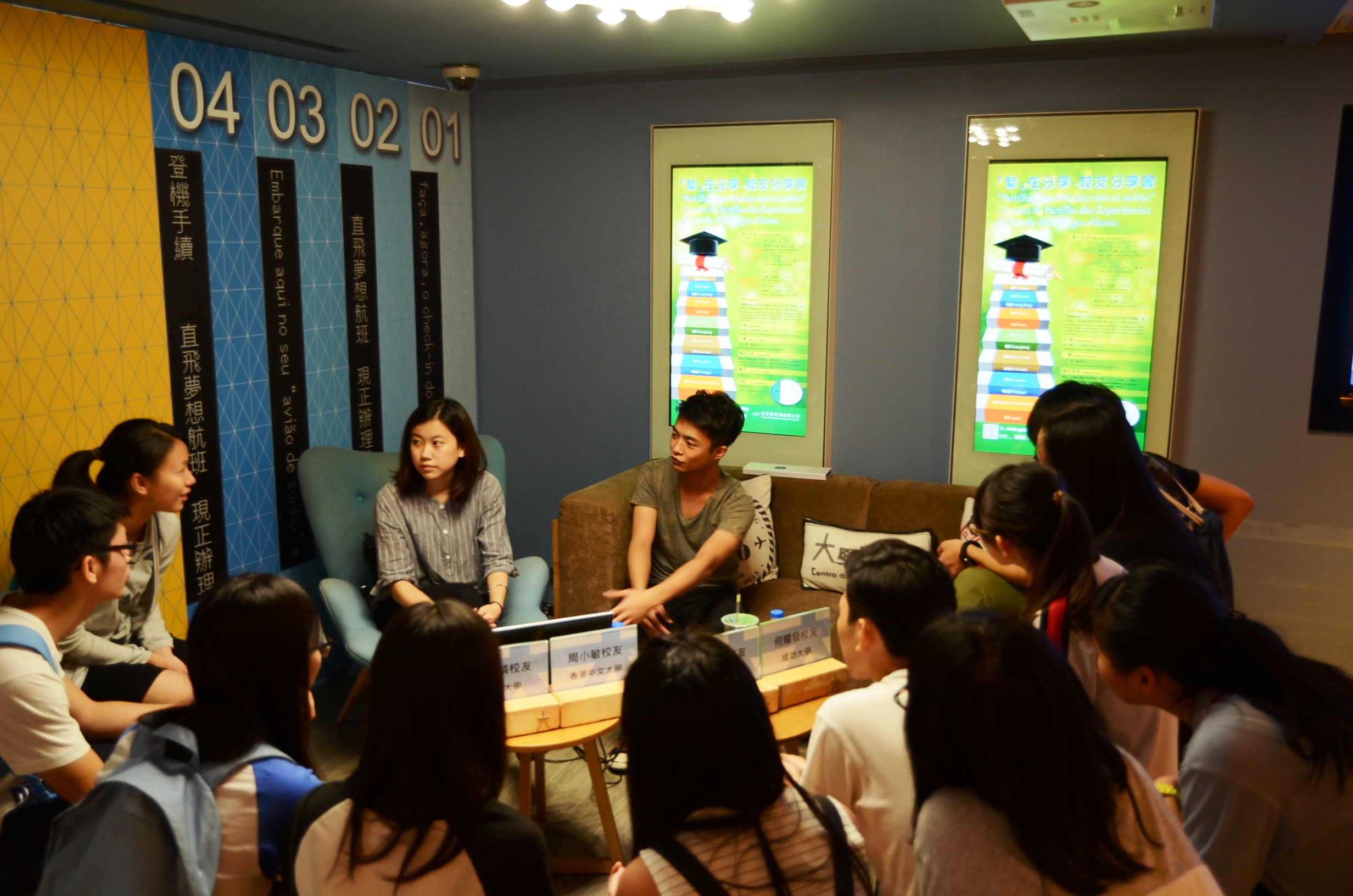十四位曾於澳門、內地(北京、上海、湖北、廣東)、香港、台灣、日本、葡萄牙、英國、加拿大、澳洲、美國等地就讀的澳門校友應邀出席,分享求學經歷、學習心得和生活情況,並解答與會者的提問,釋除升學疑慮。