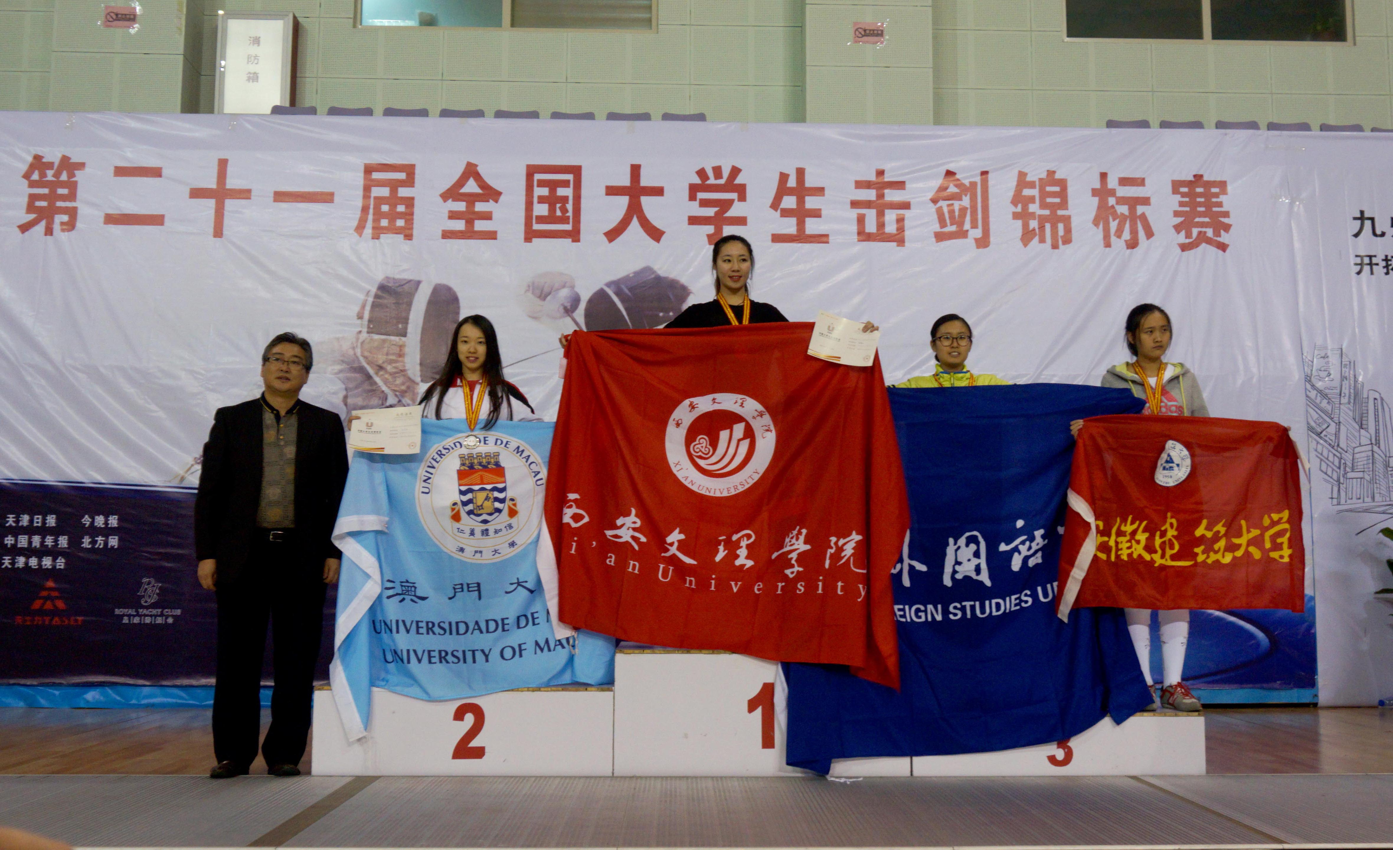 澳門大學劍擊隊日前派出了十名隊員參加第21屆全國大學生劍擊錦標賽,分別在女子甲組花劍個人項目及男子甲組佩劍團體賽奪得兩銀佳績。今屆賽事在天津外國語大學舉行,吸引了來自全國32所高校共533名學生參加。