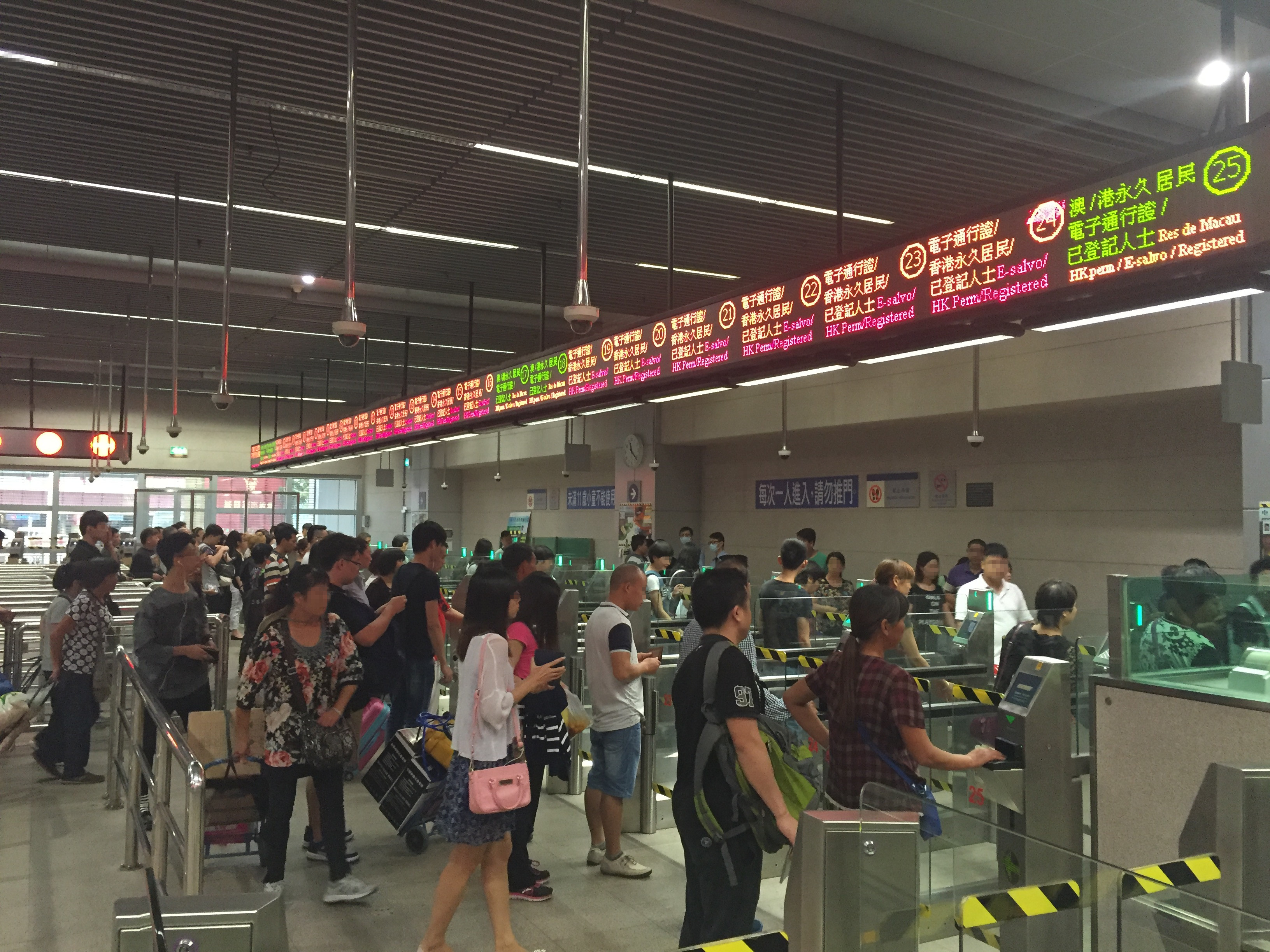據治安警察局資料統計,2015年首10月,關閘邊境站已接待超過1億通關人次,佔1億3千多萬出入境人次的七成六,比去年同期上升近一成,平均每日達33萬,節假日約38萬,單小時錄得近3萬2千人次出入境。因應接待量增長,關閘持續推行多項改善措施,確保通關安全便捷。