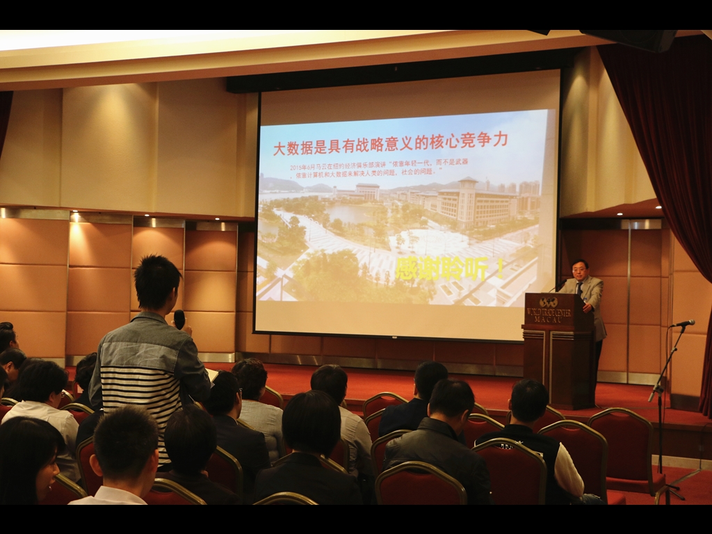 講座由澳門大學副校長(學術)倪明選講座教授主講。倪教授曾擔任國家973計劃,無線傳感網絡項目首席科學家。在加入澳大之前,為香港科技大學計算機科學與工程系講座教授,並擔任校長特別助理及香港科大霍英東研究院院長,也曾任美國國家科學基金會項目主任。倪教授表示,大數據時代開啟了全球範圍內從信息時代走向數據時代的思維變革和技術創新,如何通過數據分析、挖掘及應用,將數據轉化為具有戰略意義的核心競爭力是世界各國共同的發展目標和願景。