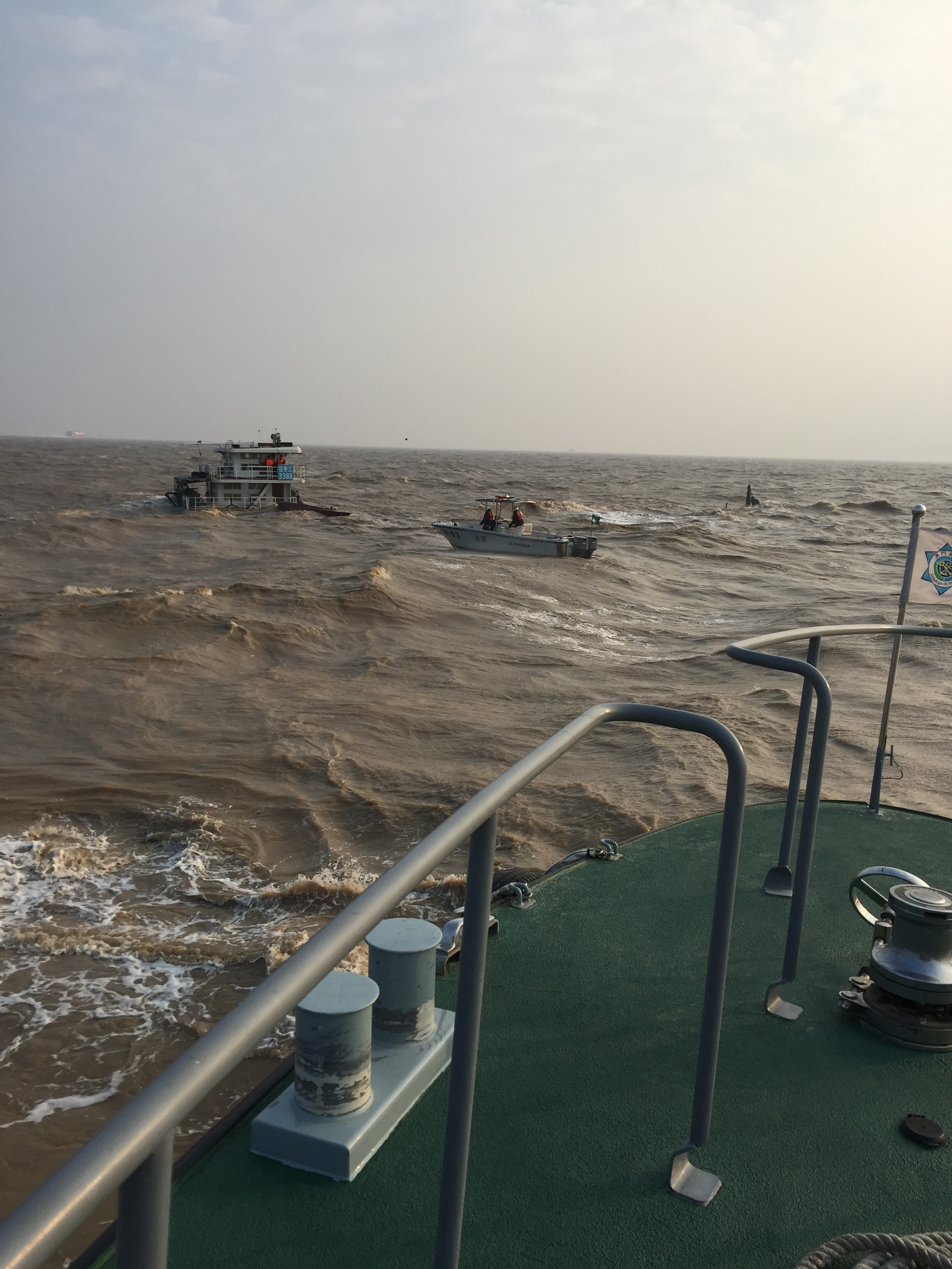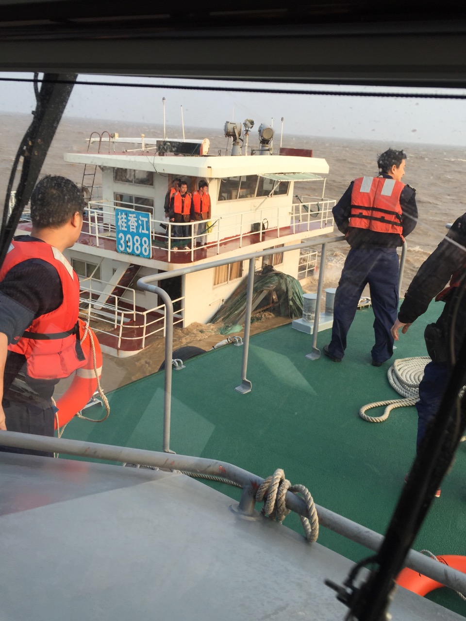 今早約7時,海事及水務局船舶交通管理中心接報一艘由深圳出發前往珠海斗門的內地運沙船“桂香江39xx”,疑因風浪太大導致船倉嚴重入水,在駛經青洲水道1號浮標與本澳機場跑道之間下沉至僅餘兩層駕駛台橋樓露出水面,船上三名船員需要棄船逃生。海事及水務局馬上通知海關,海關派出快艇、巡邏船及潛水隊到場救援,運沙船上三名船員被救起後送往青洲海關總部,無人受傷。