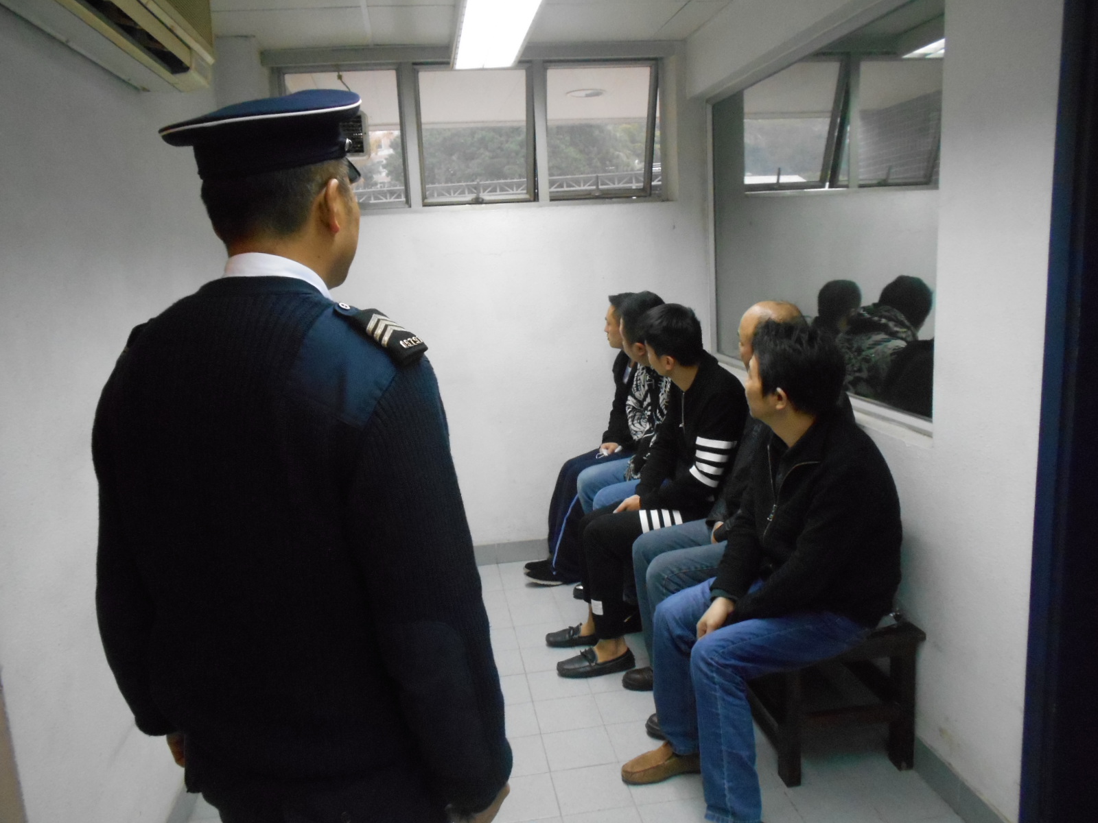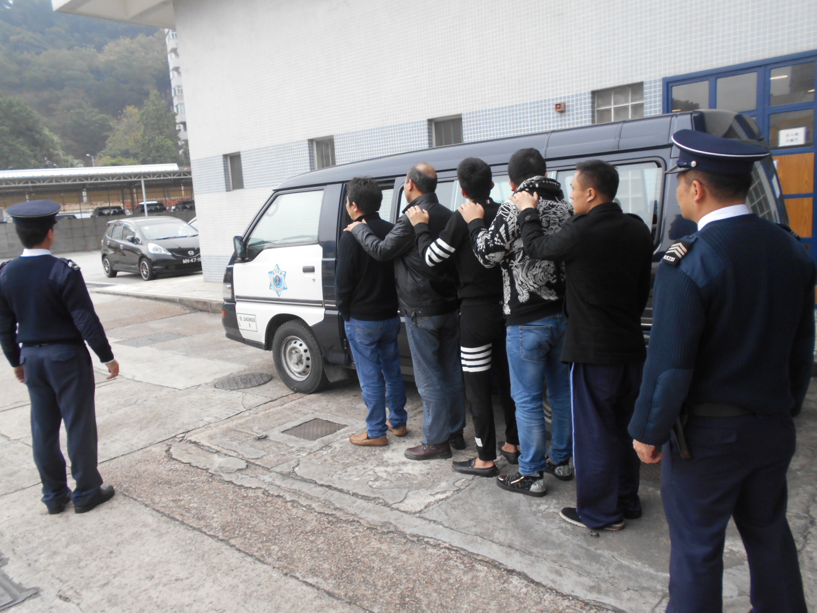 經身份核實,被捕5男,年齡介乎28至52歲,分別來自江蘇、江西、湖北和福建。在調查過程中,4人承認本月初乘船偷渡來澳,1人聲稱由橫琴游泳偷渡來澳,並發現一名來自江西的48歲男子被治安警察局禁止入境,觸犯了再入境罪,海關依法將該名江西男子移送司法機關處理,其餘4男依法移交治安警察局處理。